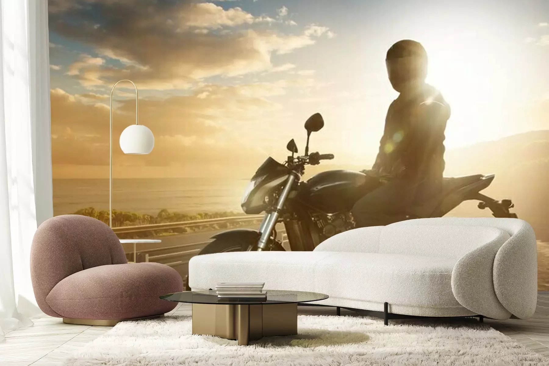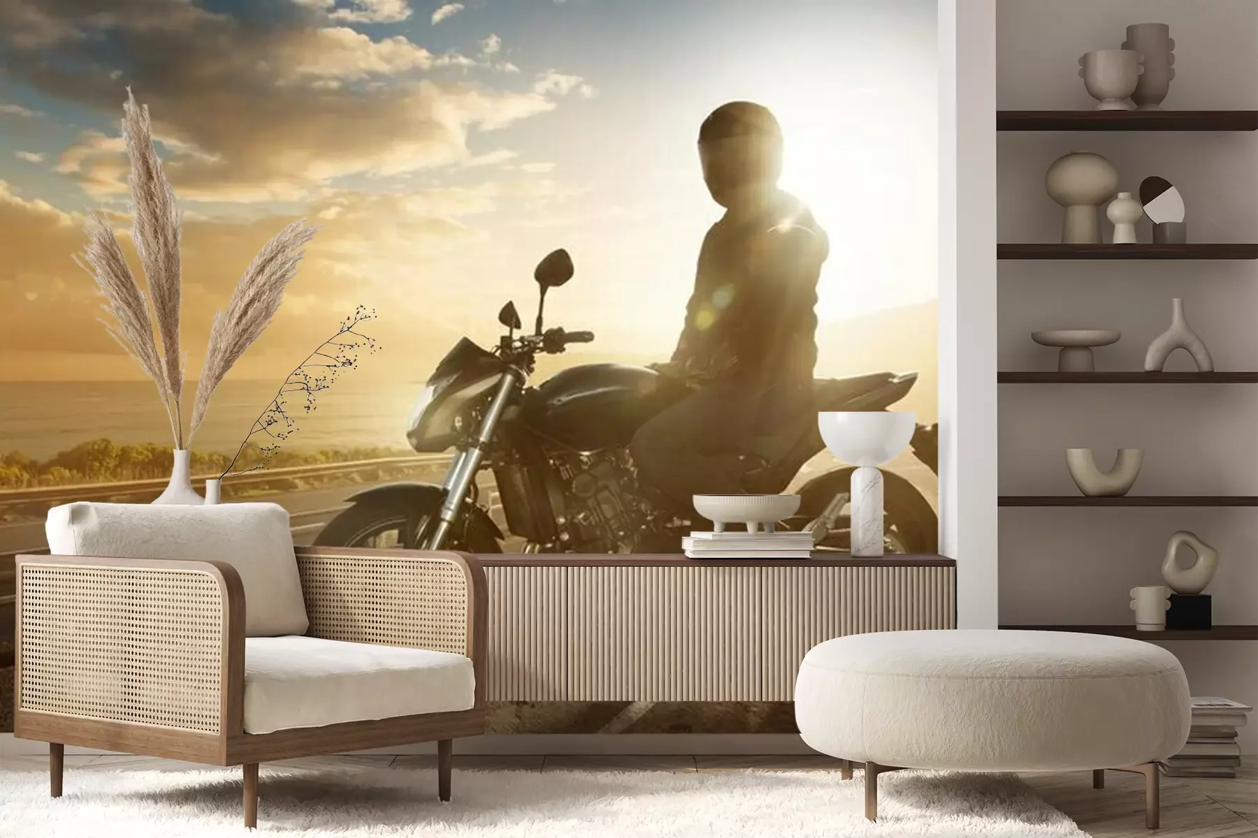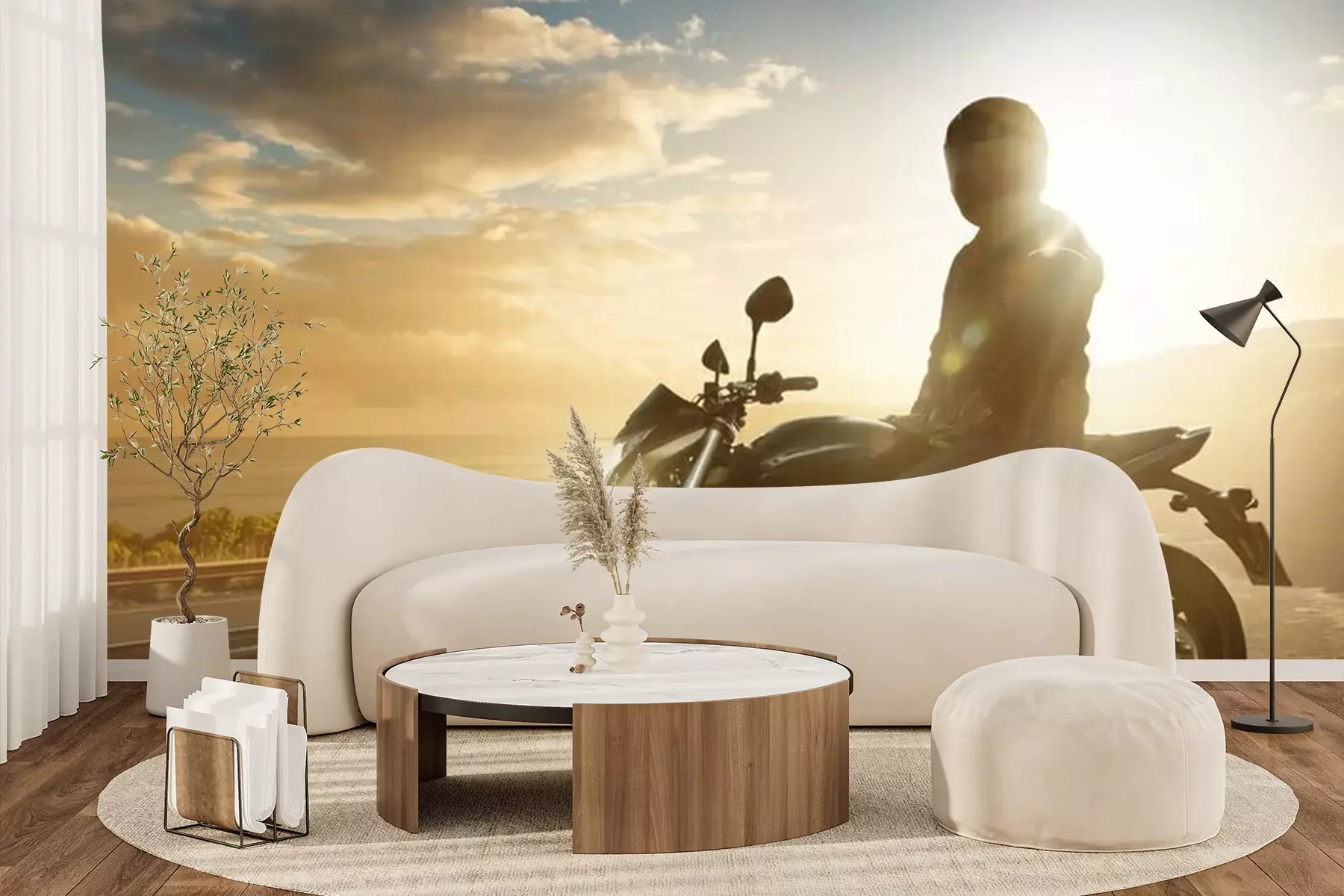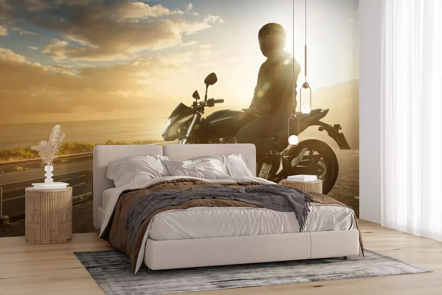 Cadre d'un motard roulant au coucher du soleilLivraison sans problème assurée par des transporteurs de confiance