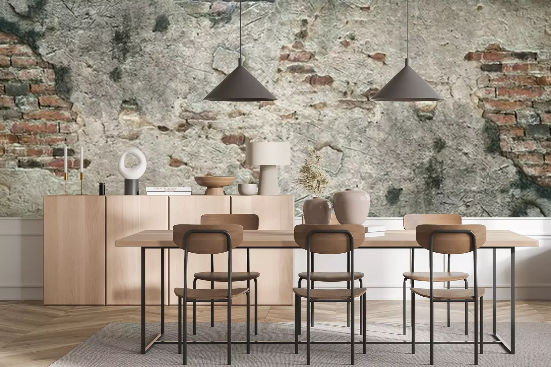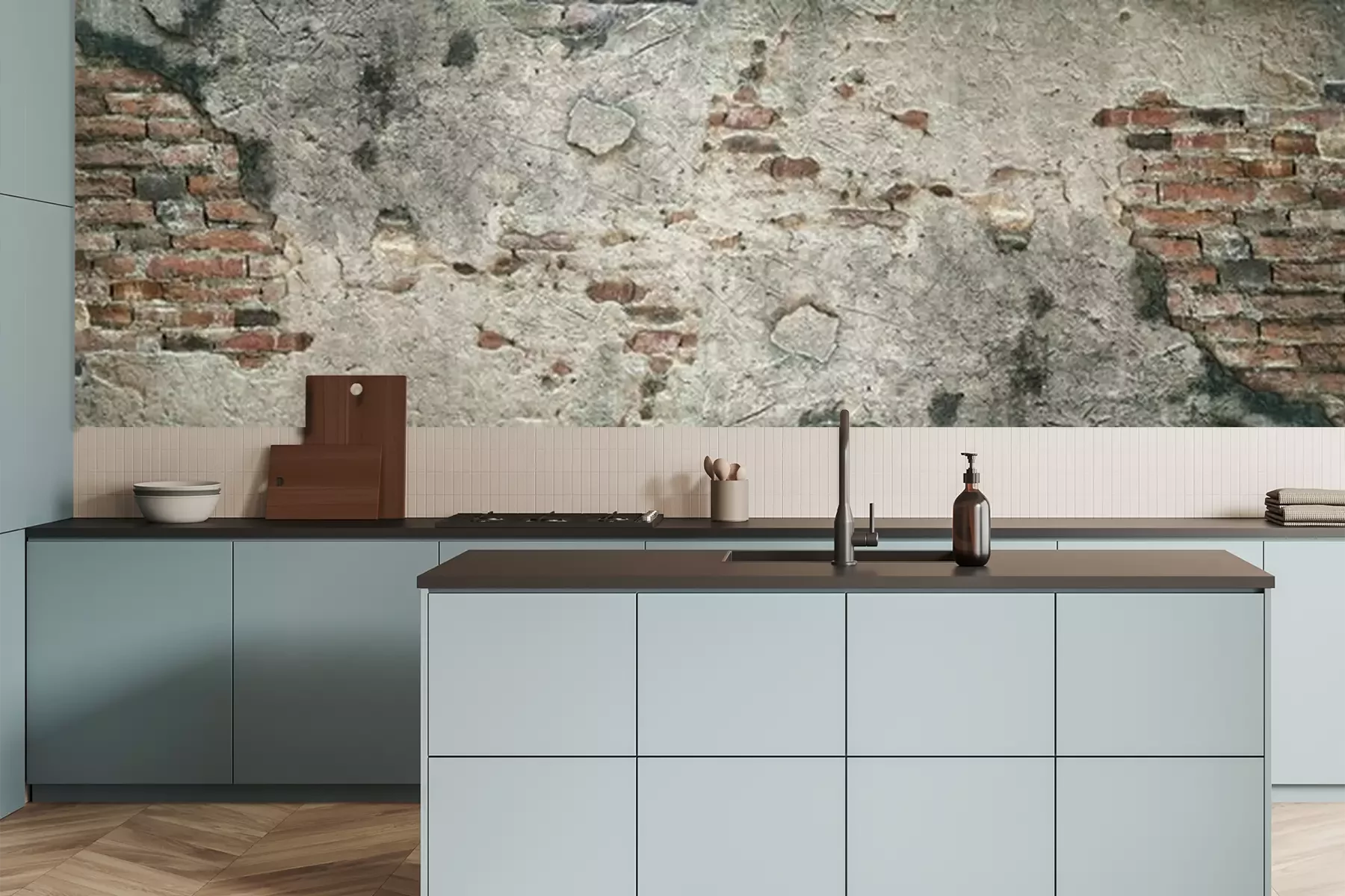 Papier peint  Mur de briques recouvert de béton