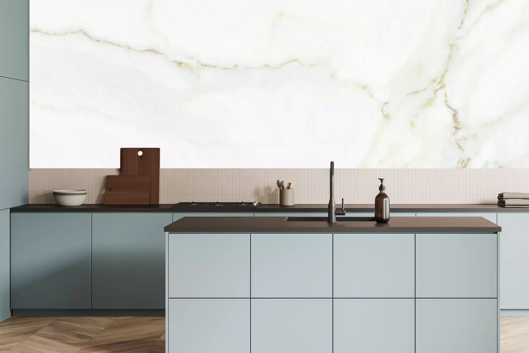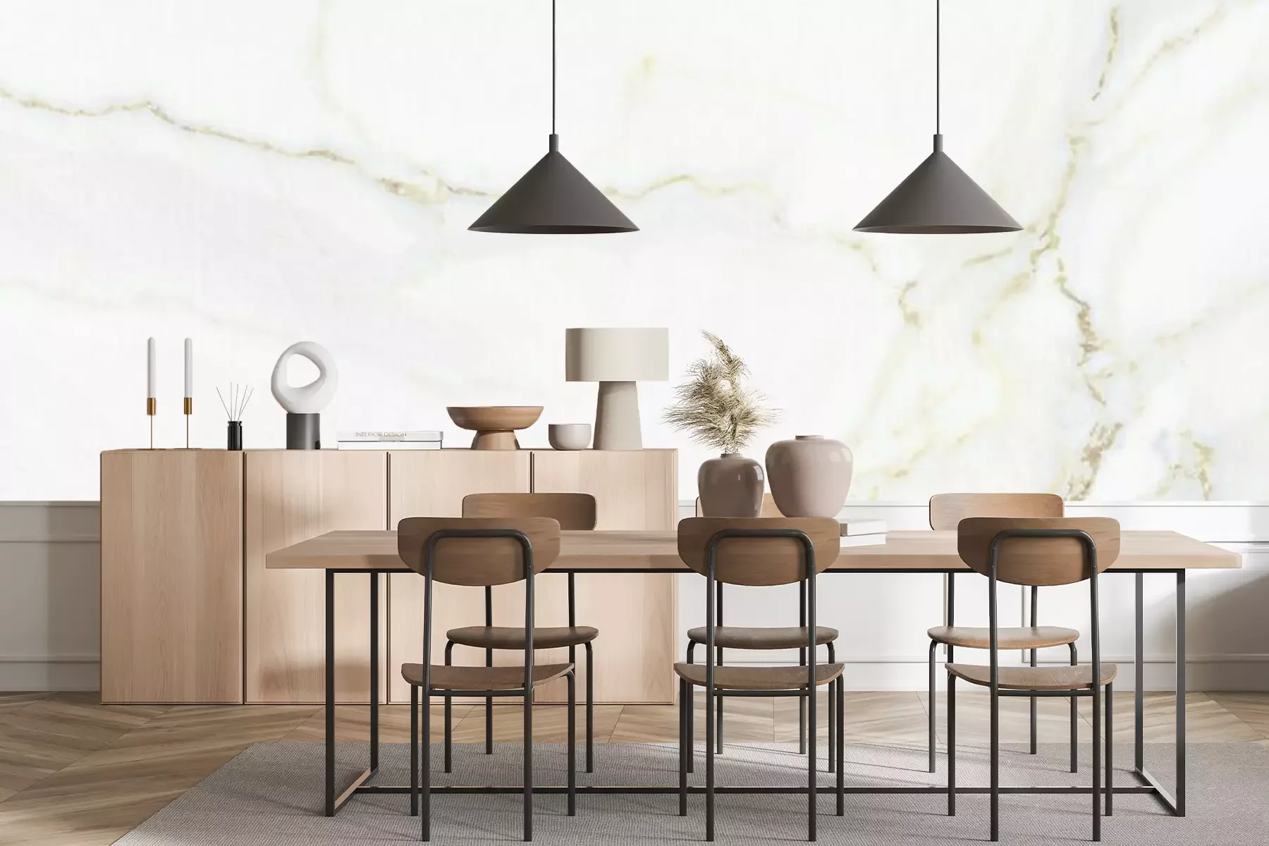 Papier peint  Mur en marbre blanc et rayures jaunes