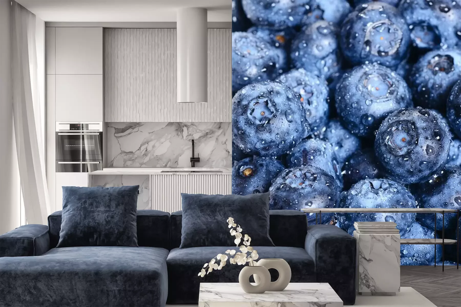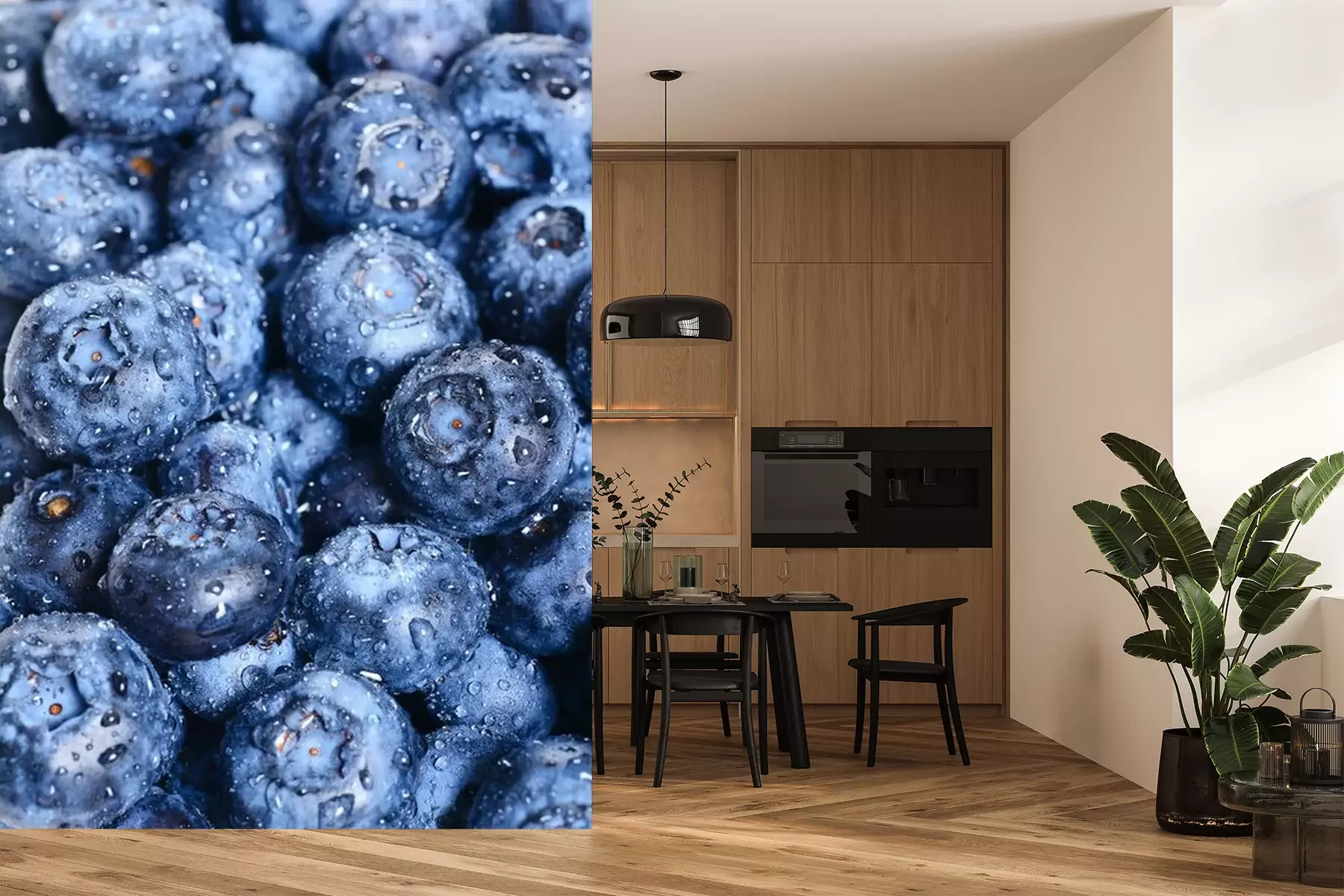 Papier peint  Myrtilles recouvertes de gouttes d'eau