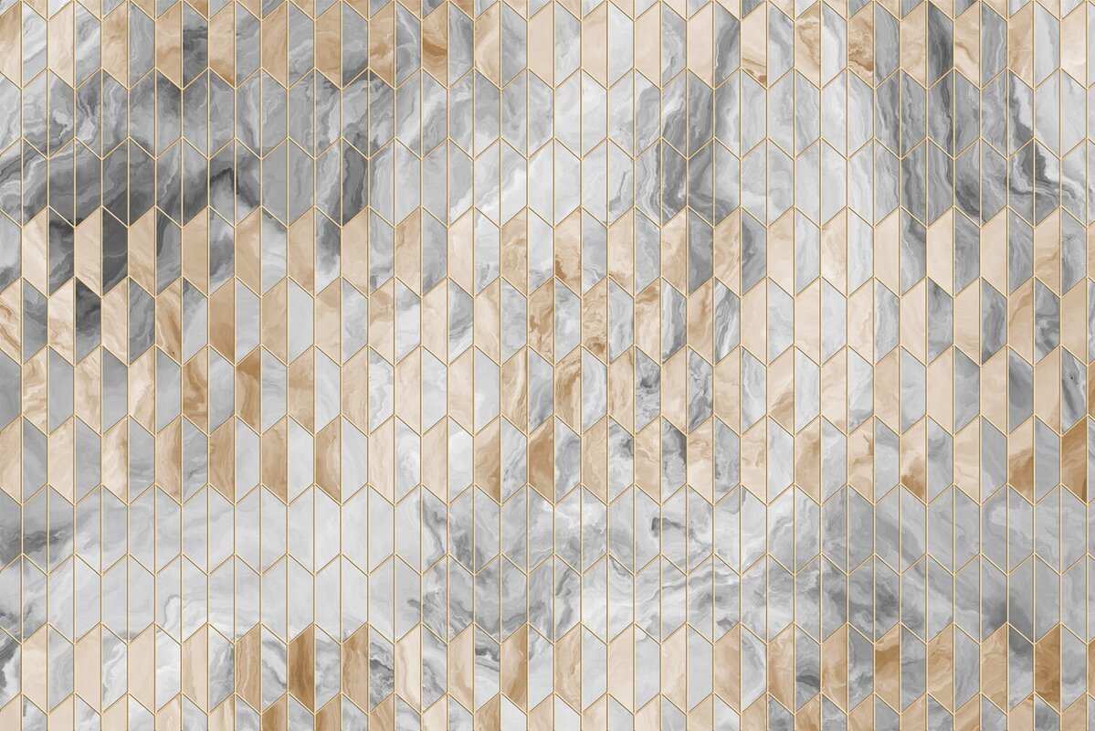 Papier peint : Narrow ornament of marble parquet with metal elements. Geometric abstraction, rhombuses. Fashion poster for textile, fabric, web, Wallpaper, poster, home design