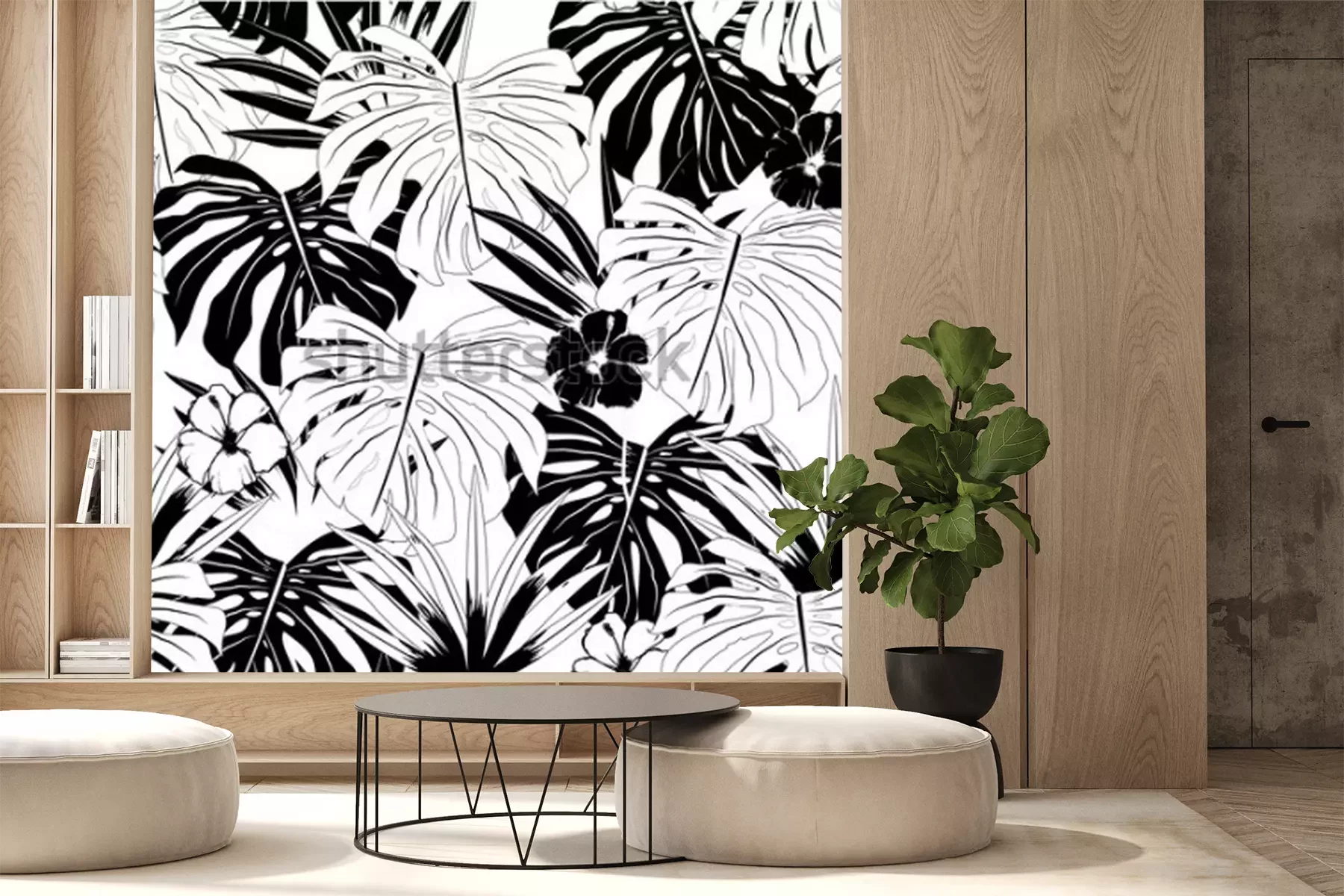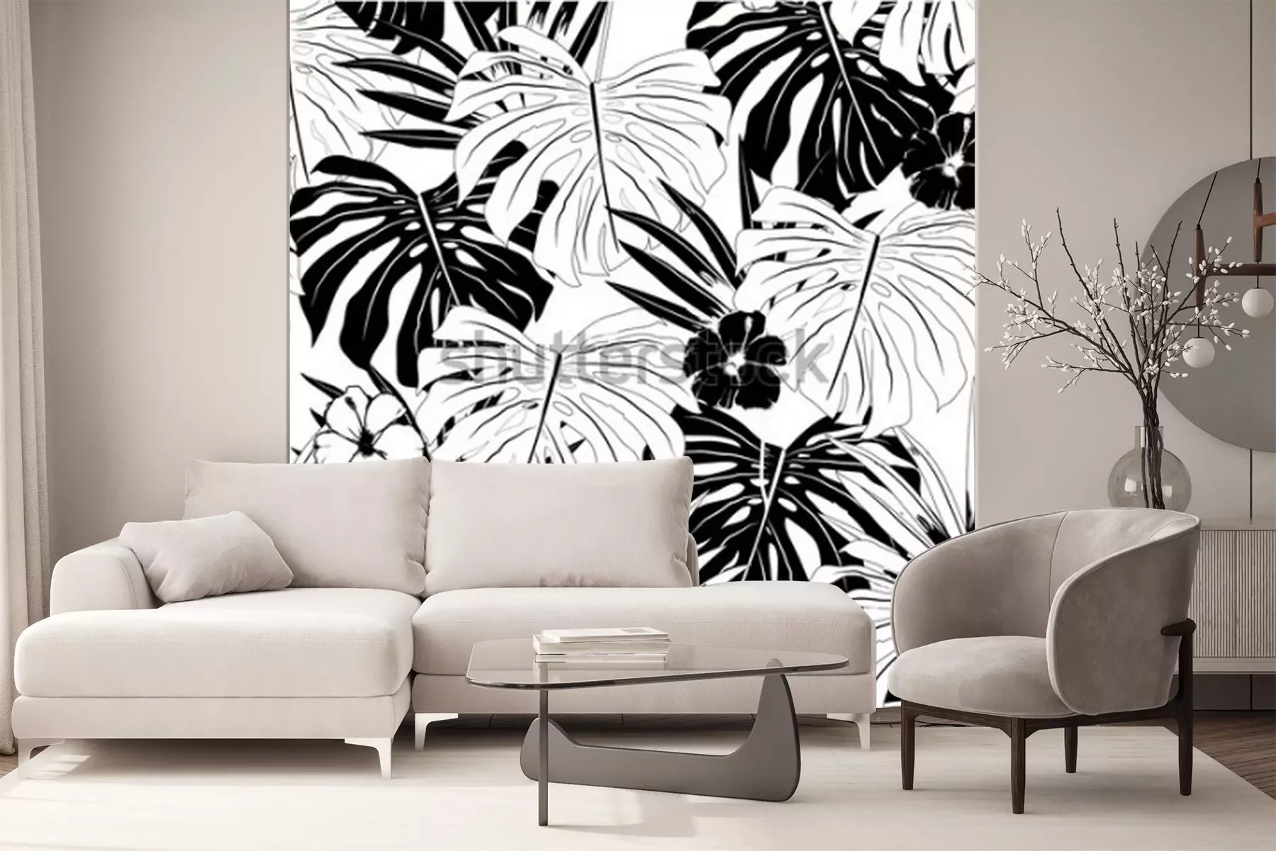Papier peint  Nature et feuilles en noir et blanc