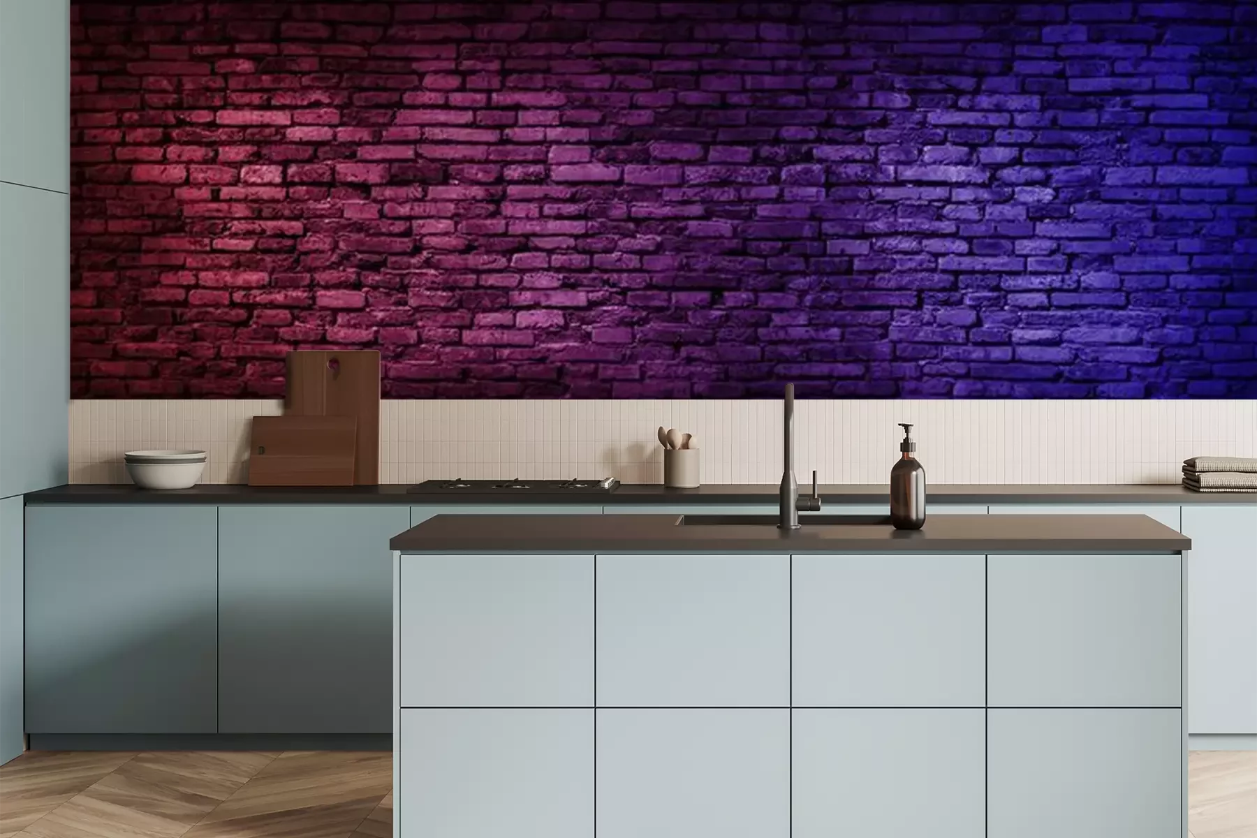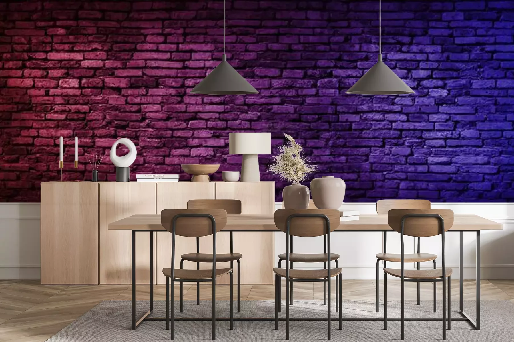 Papier peint  Néons sur un mur de briques