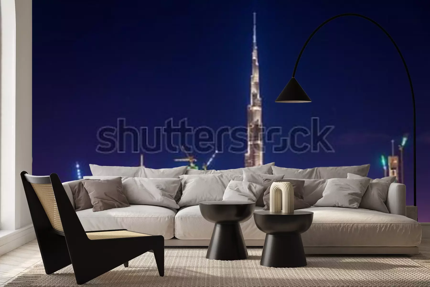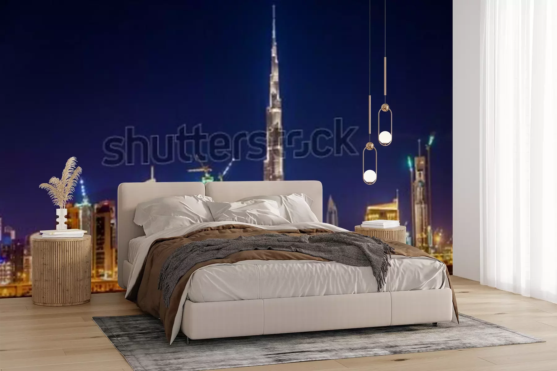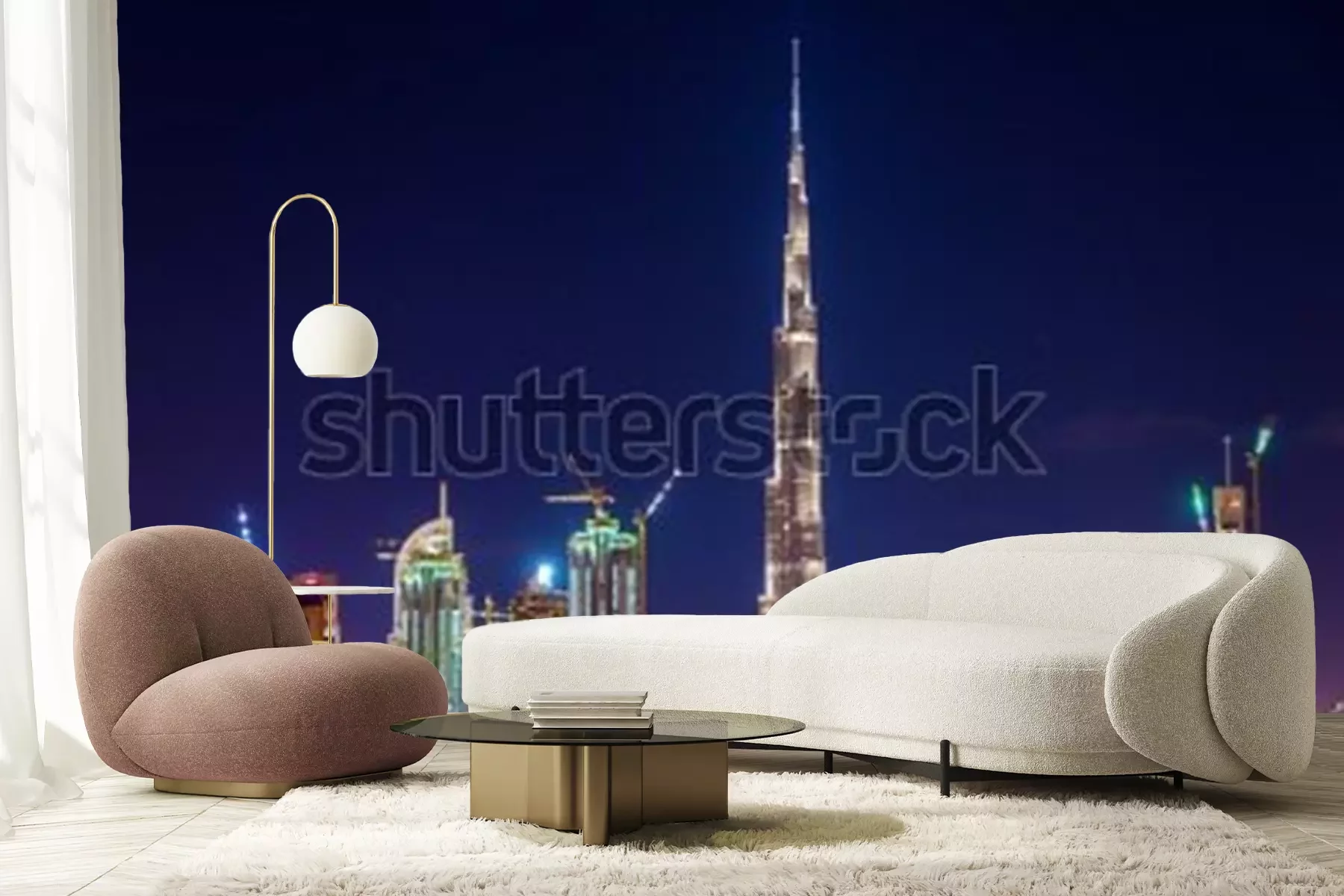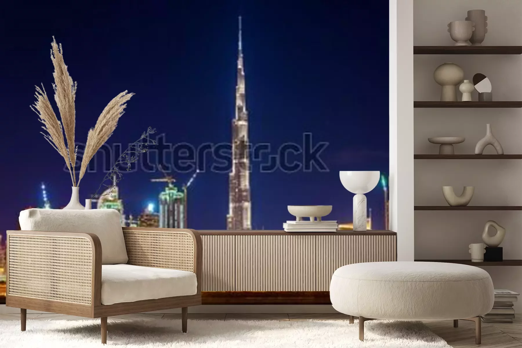 Papier peint  Night view of Dubai Downtown with Burj Khalifa