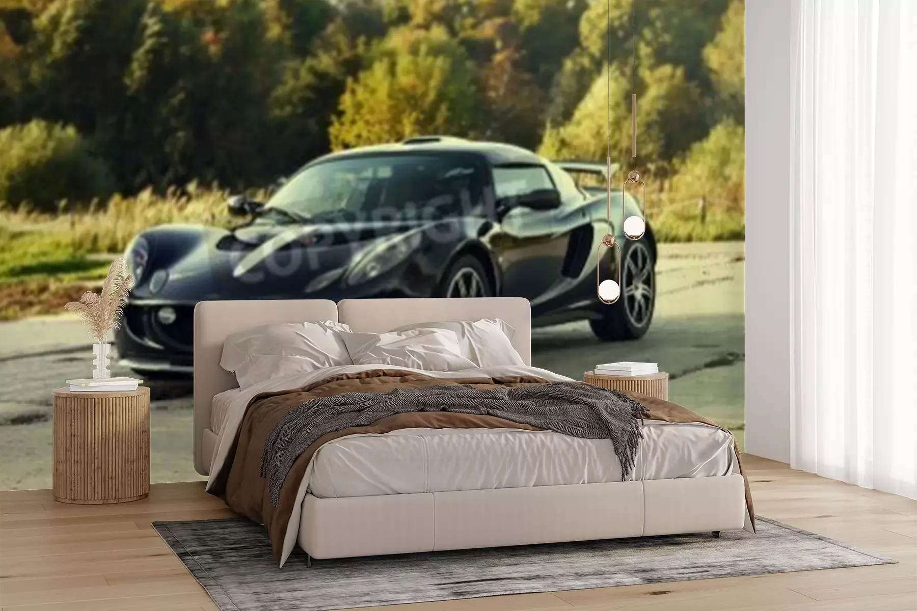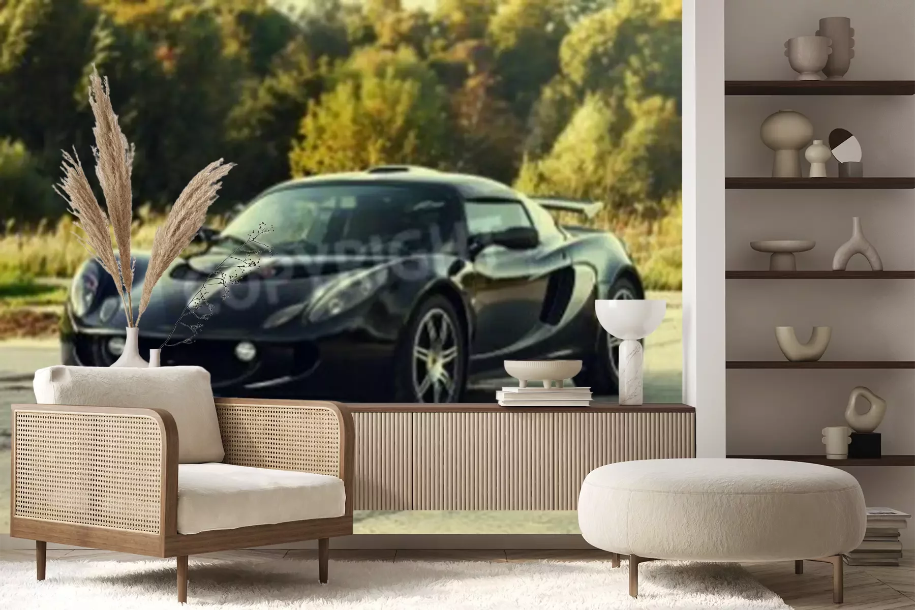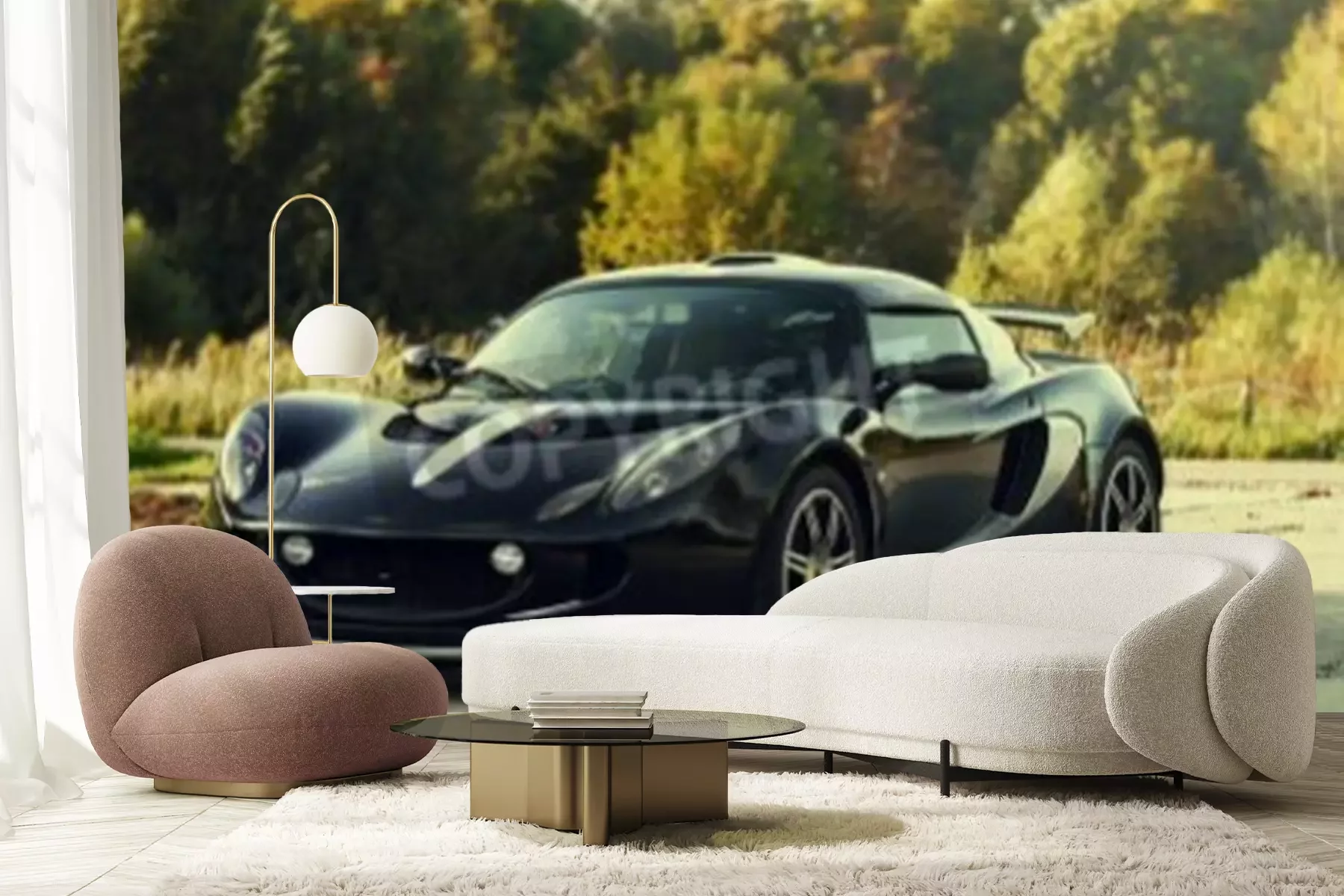 Papier peint  Noir voiture agressive du sport sur la nature fond vert