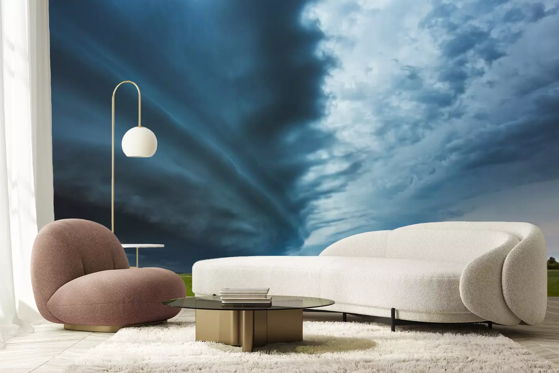 Papier peint  Nuages orageux au bord de la route