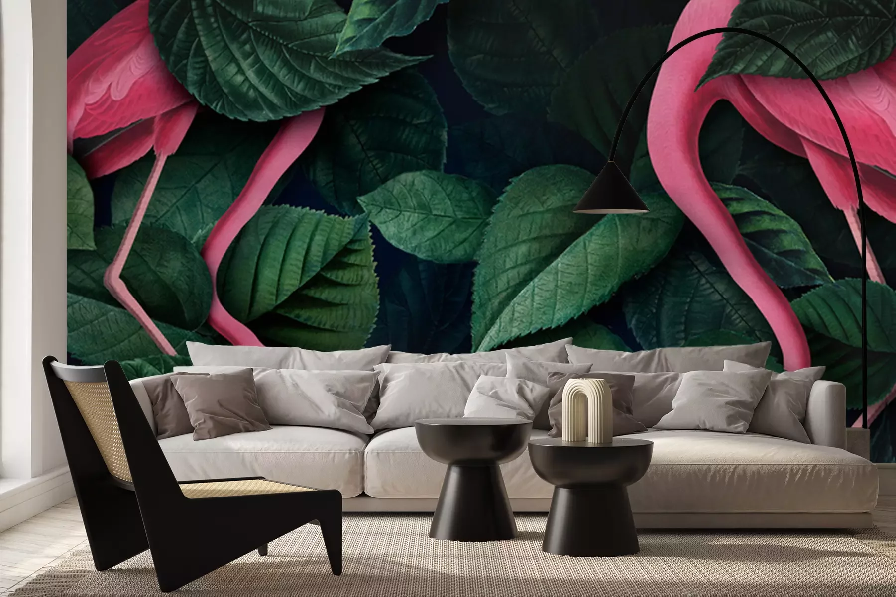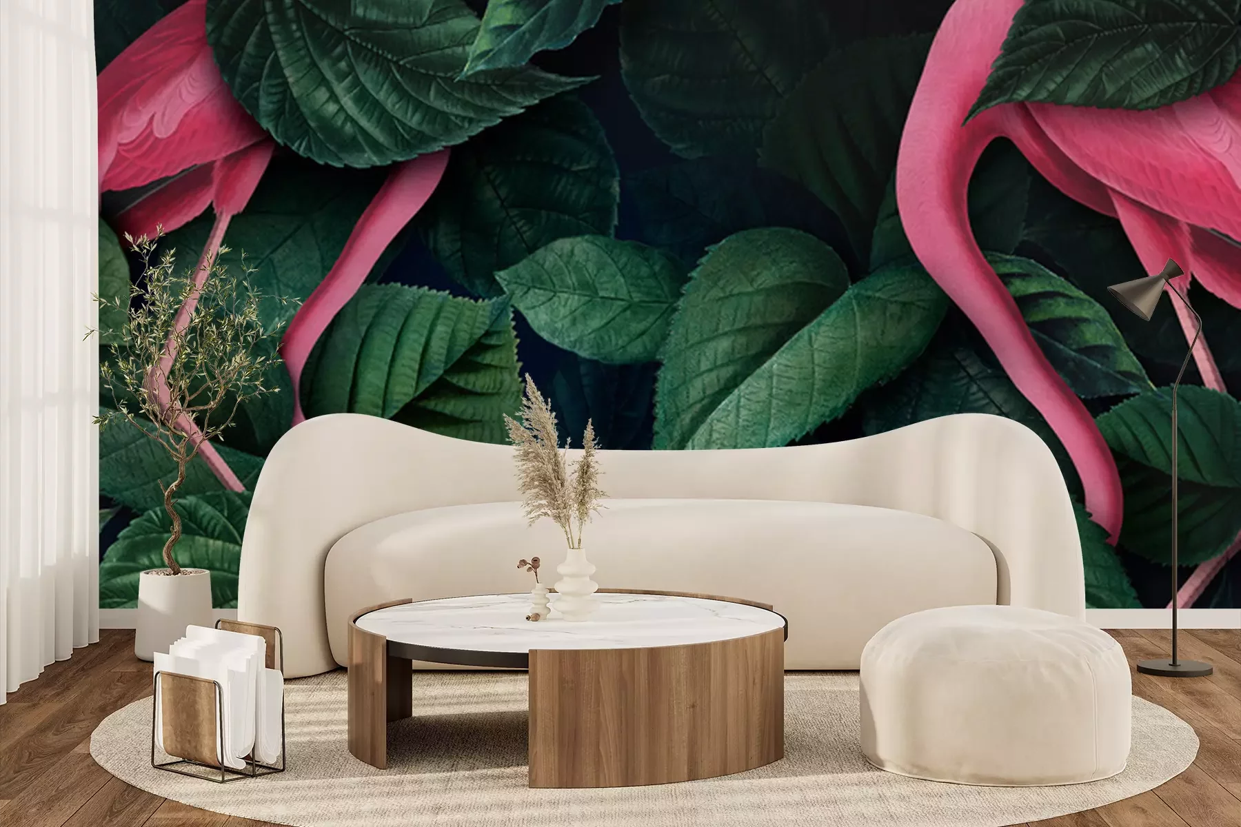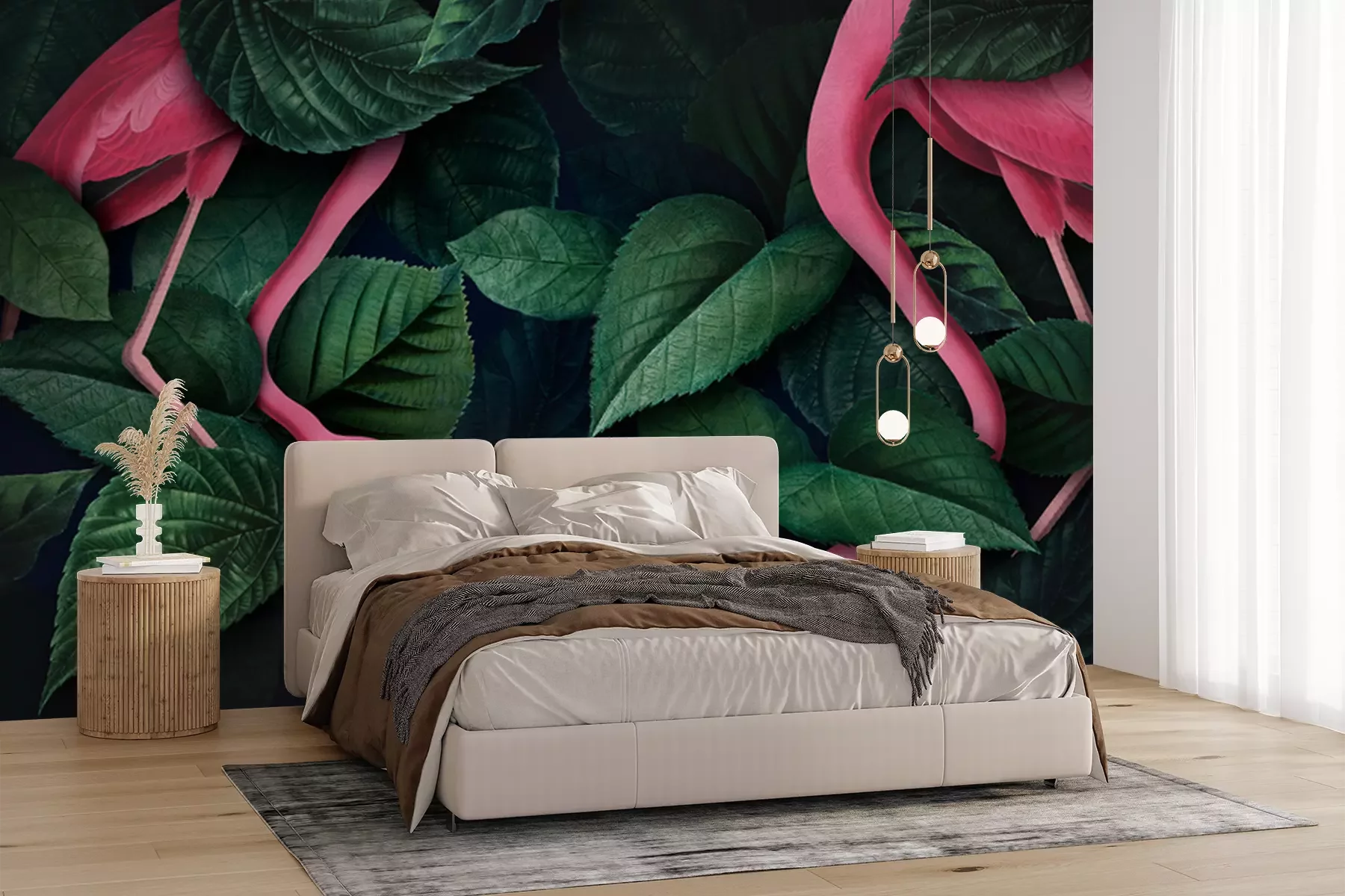 Papier peint  Oiseaux exotiques au milieu de feuilles vertes