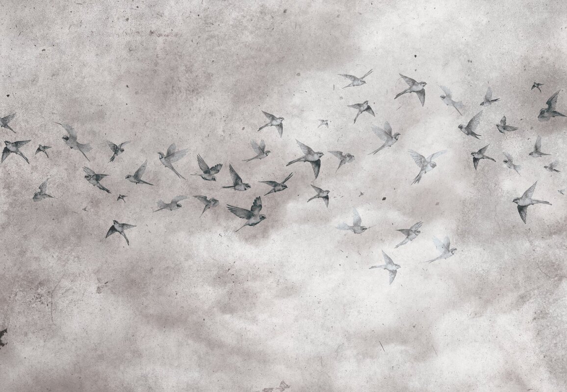 Papier peint : Oiseaux sur fond en béton de style loft