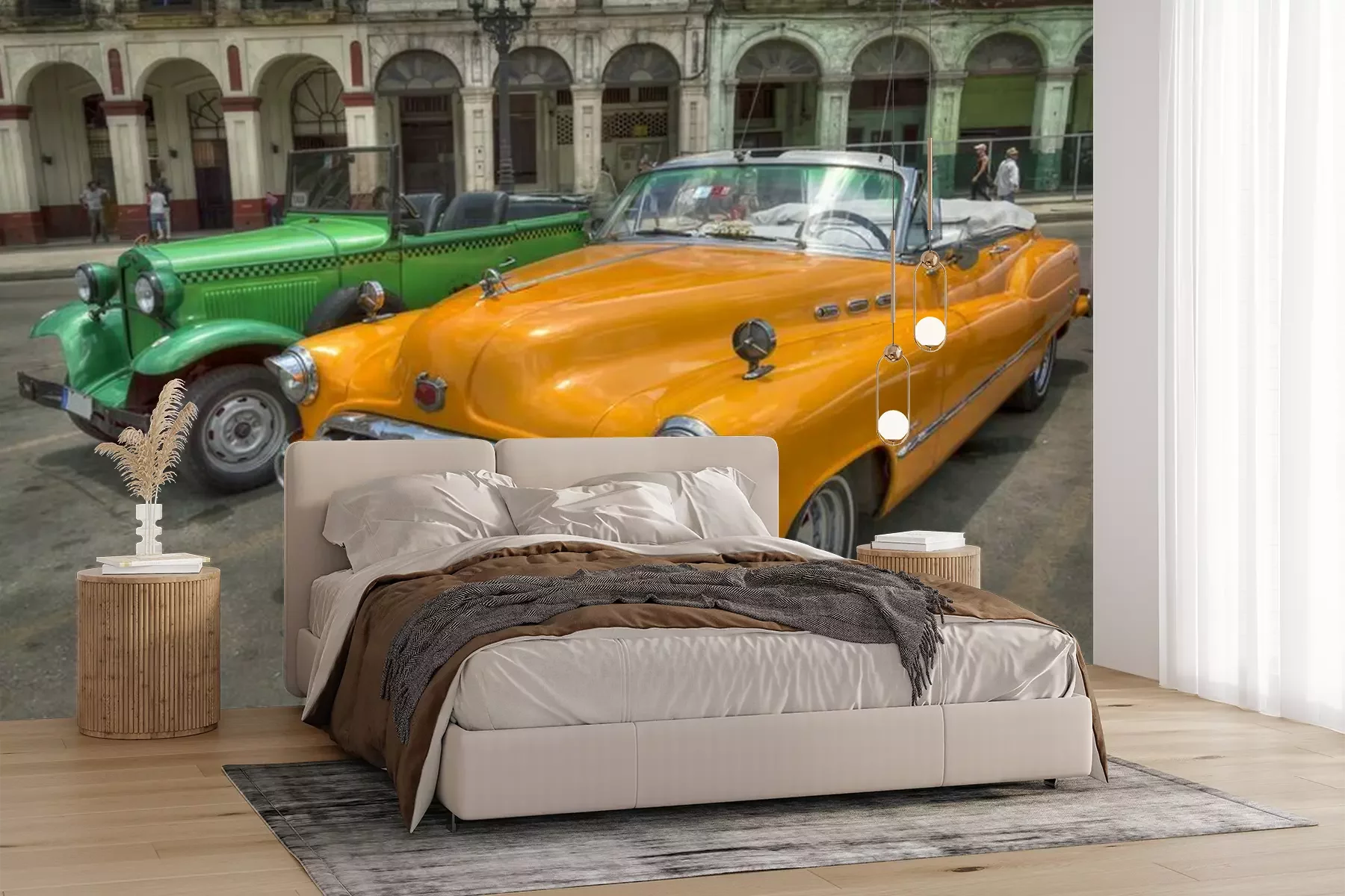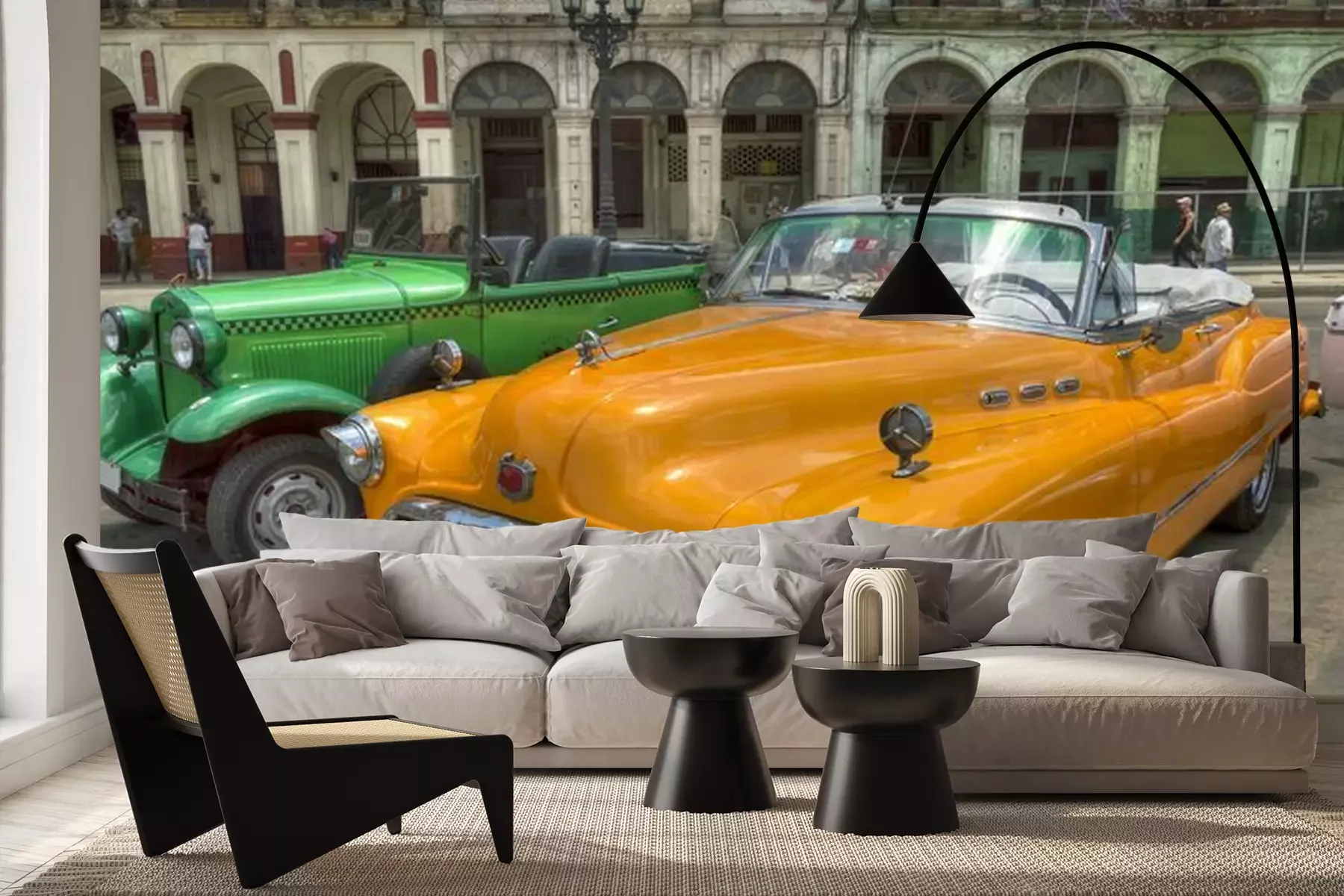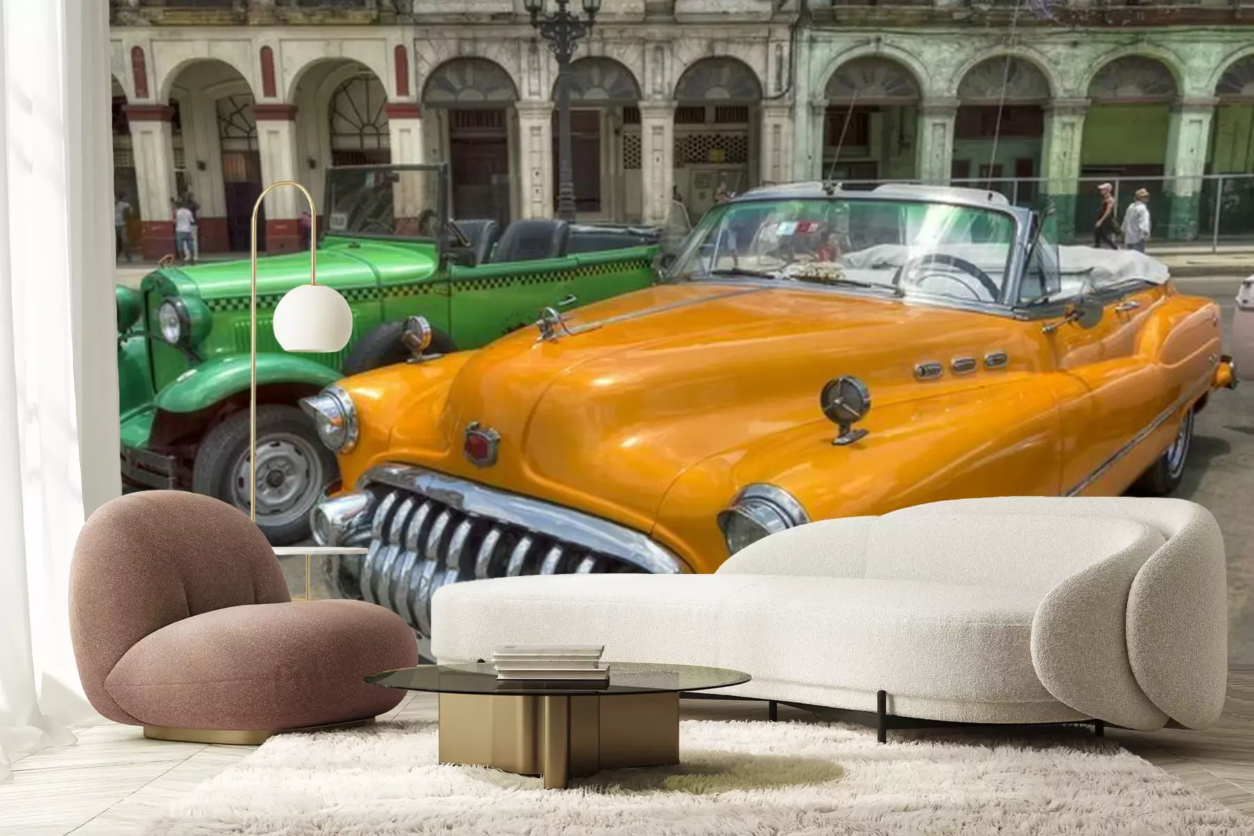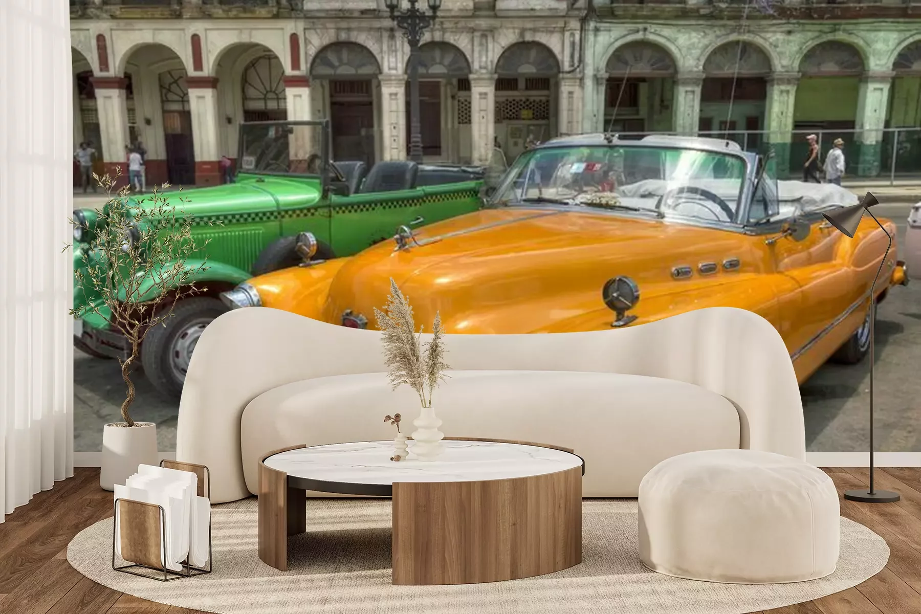 Papier peint  Orange et les voitures vertes devant Capitole, La Havane, Cuba
