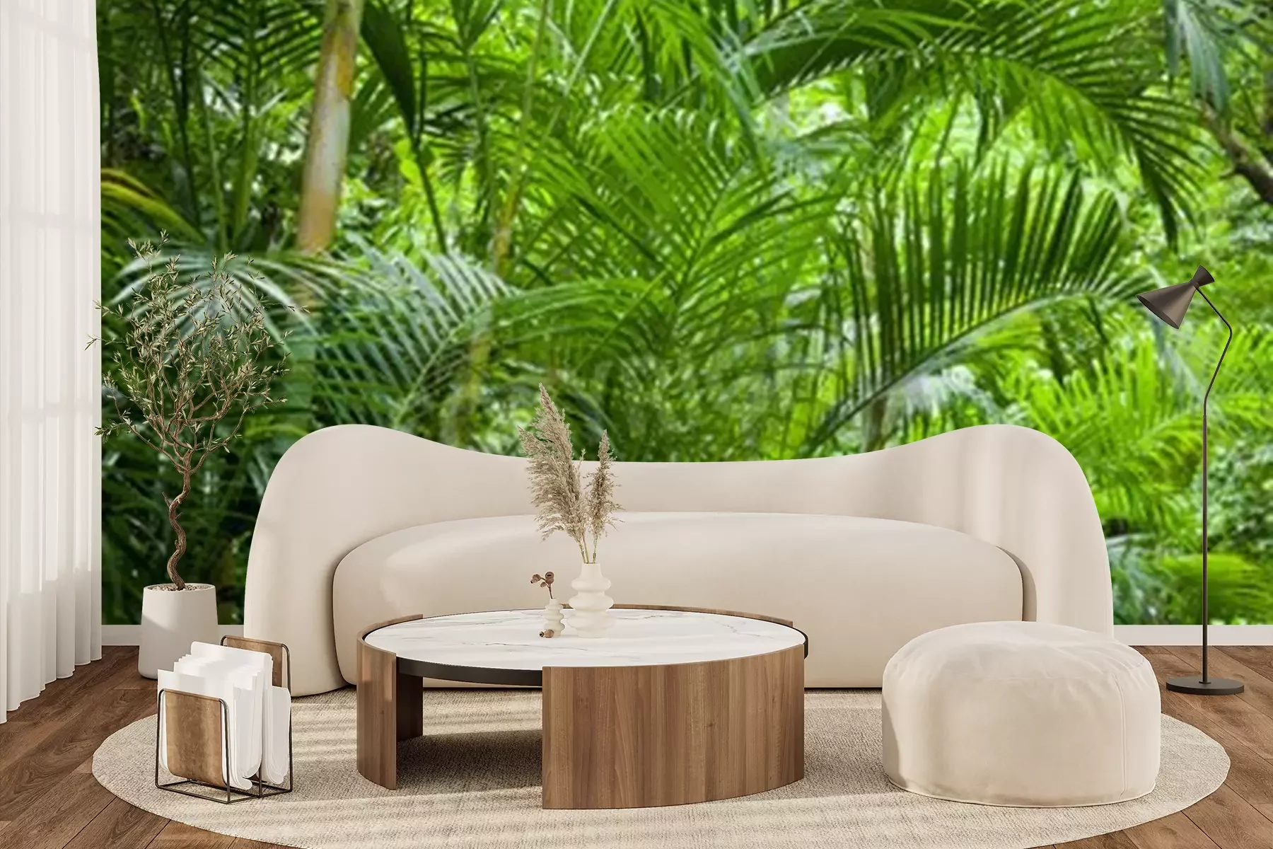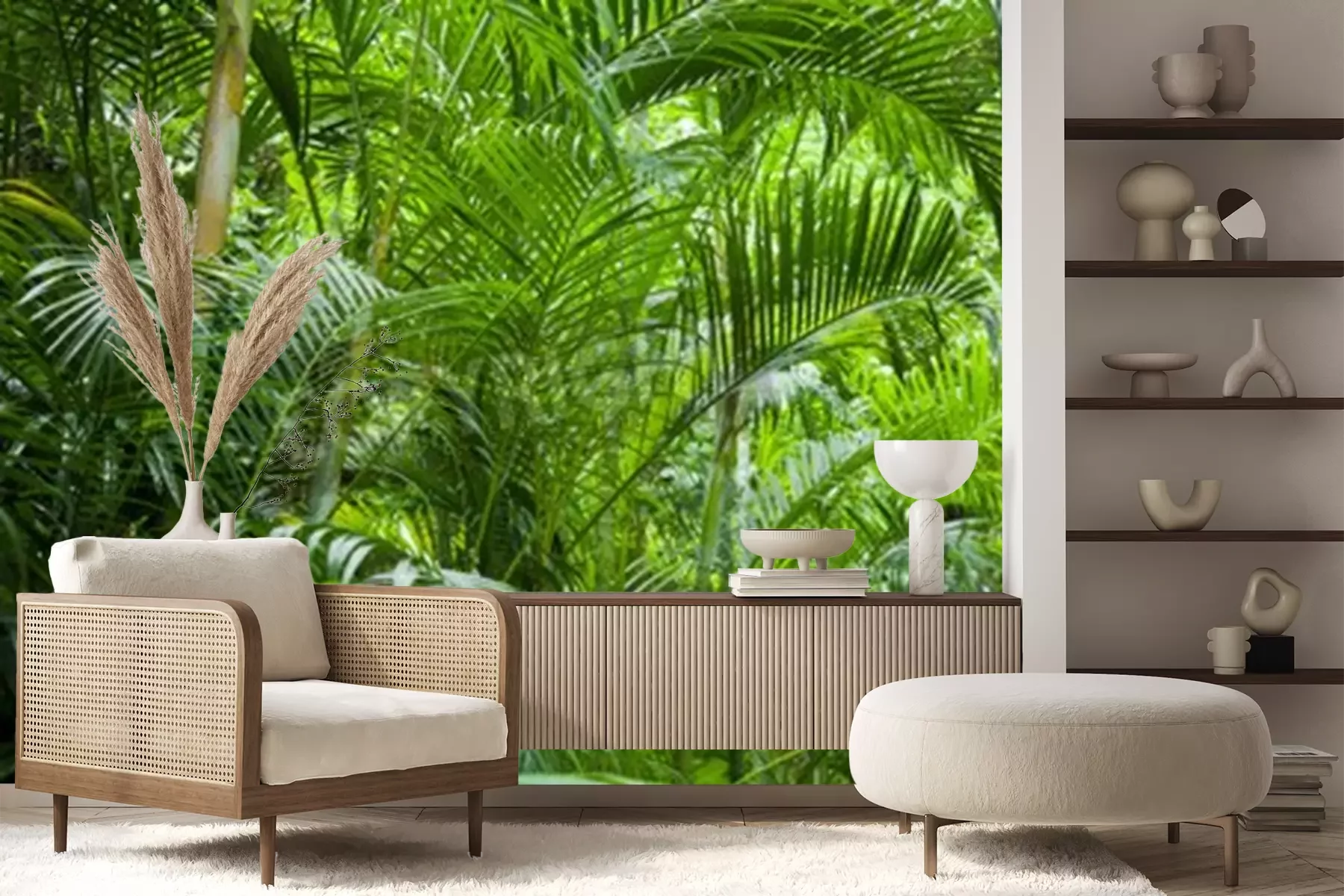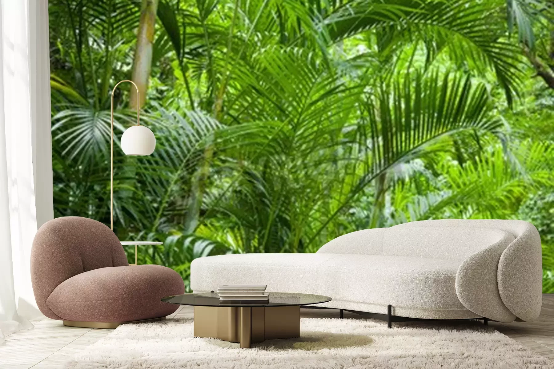 Papier peint  Palmiers dans la jungle verte