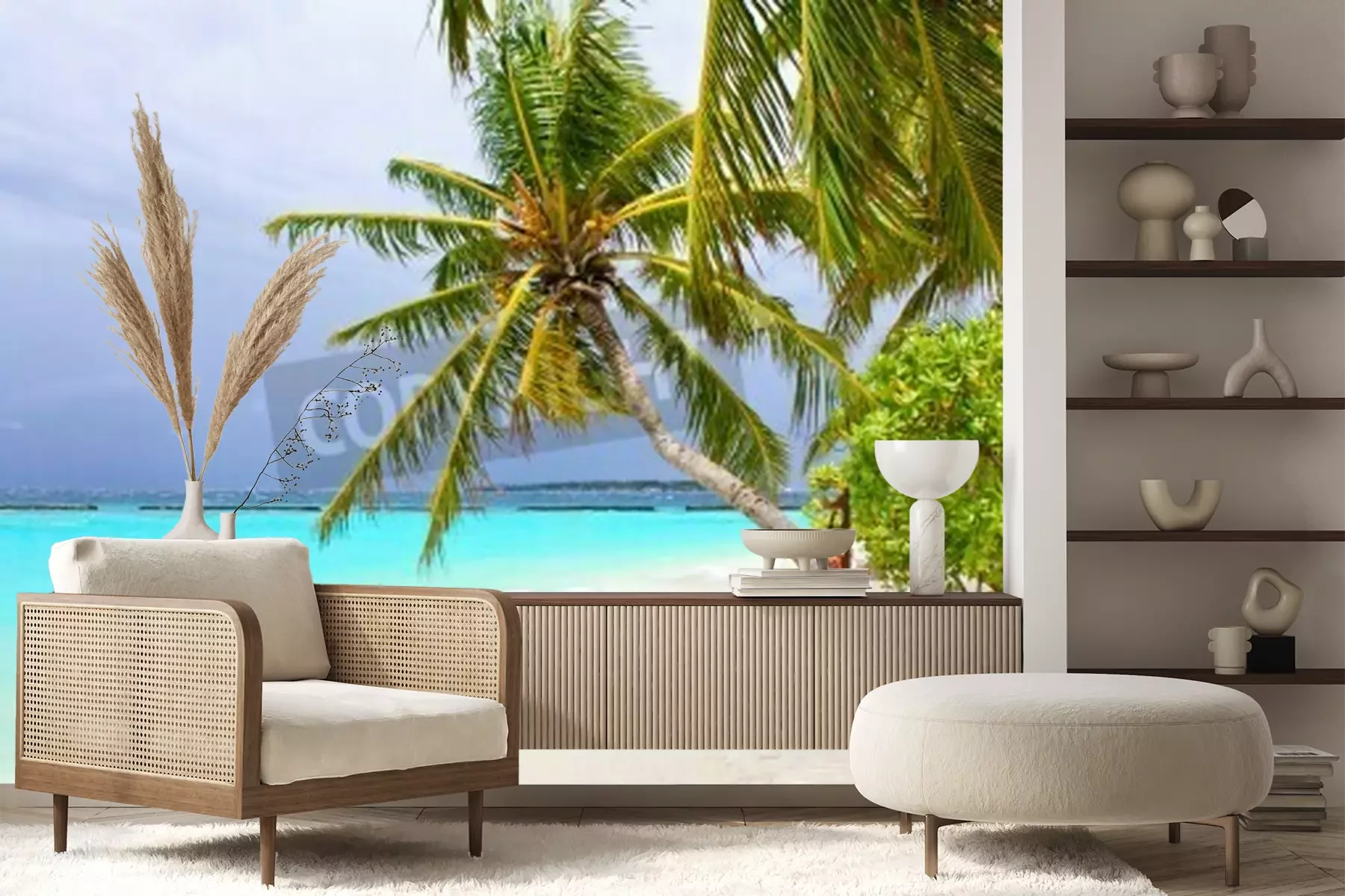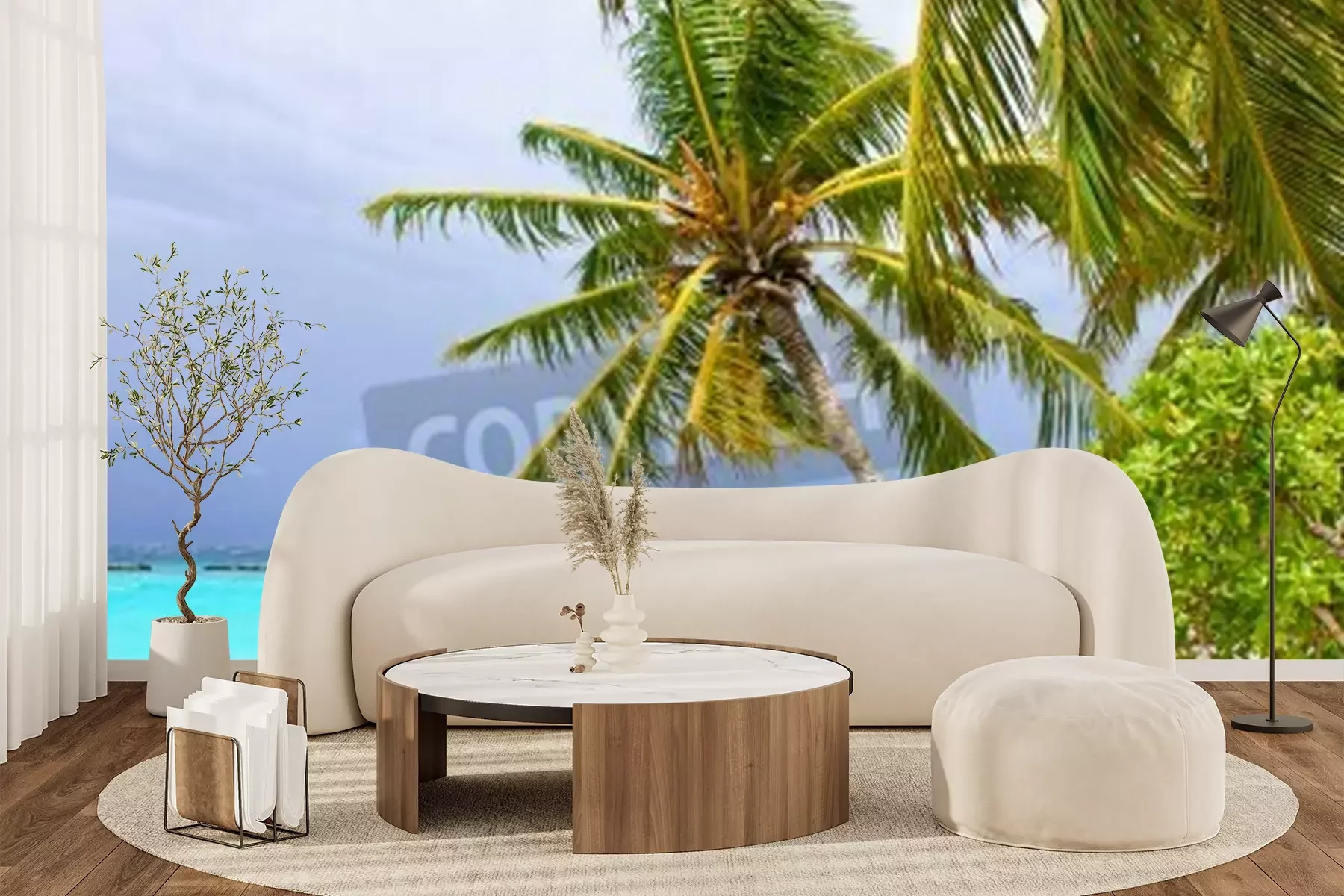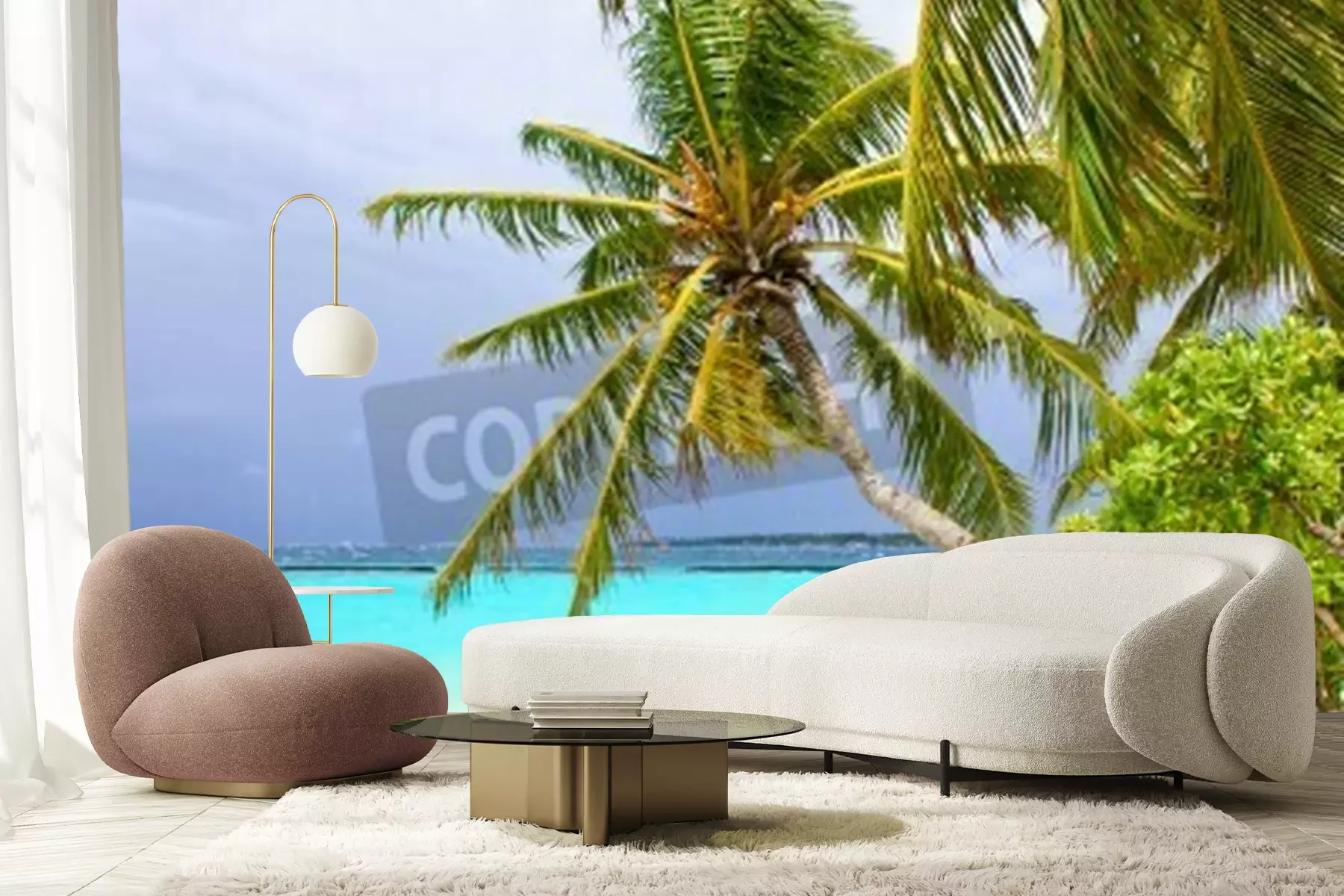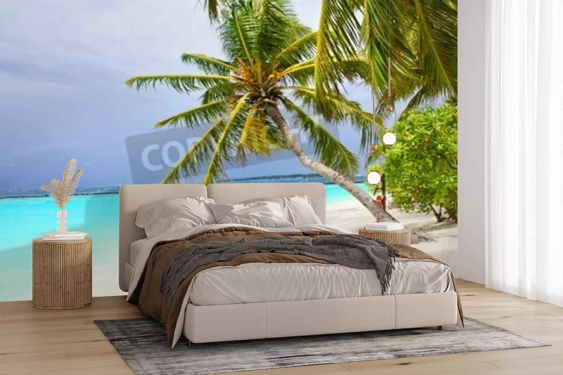 Papier peint  Palmiers et noix de coco sur la plage