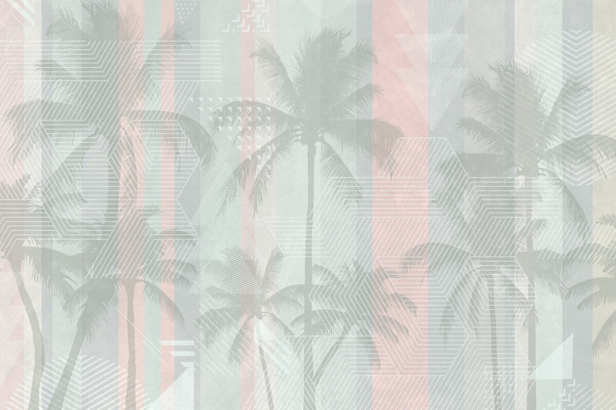 Papier peint : Palmiers gris sur un mur à rayures
