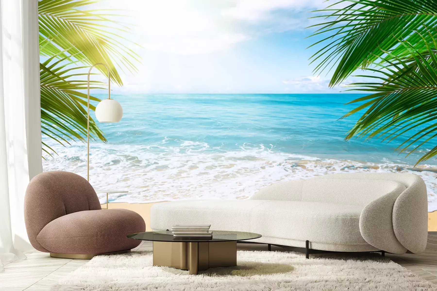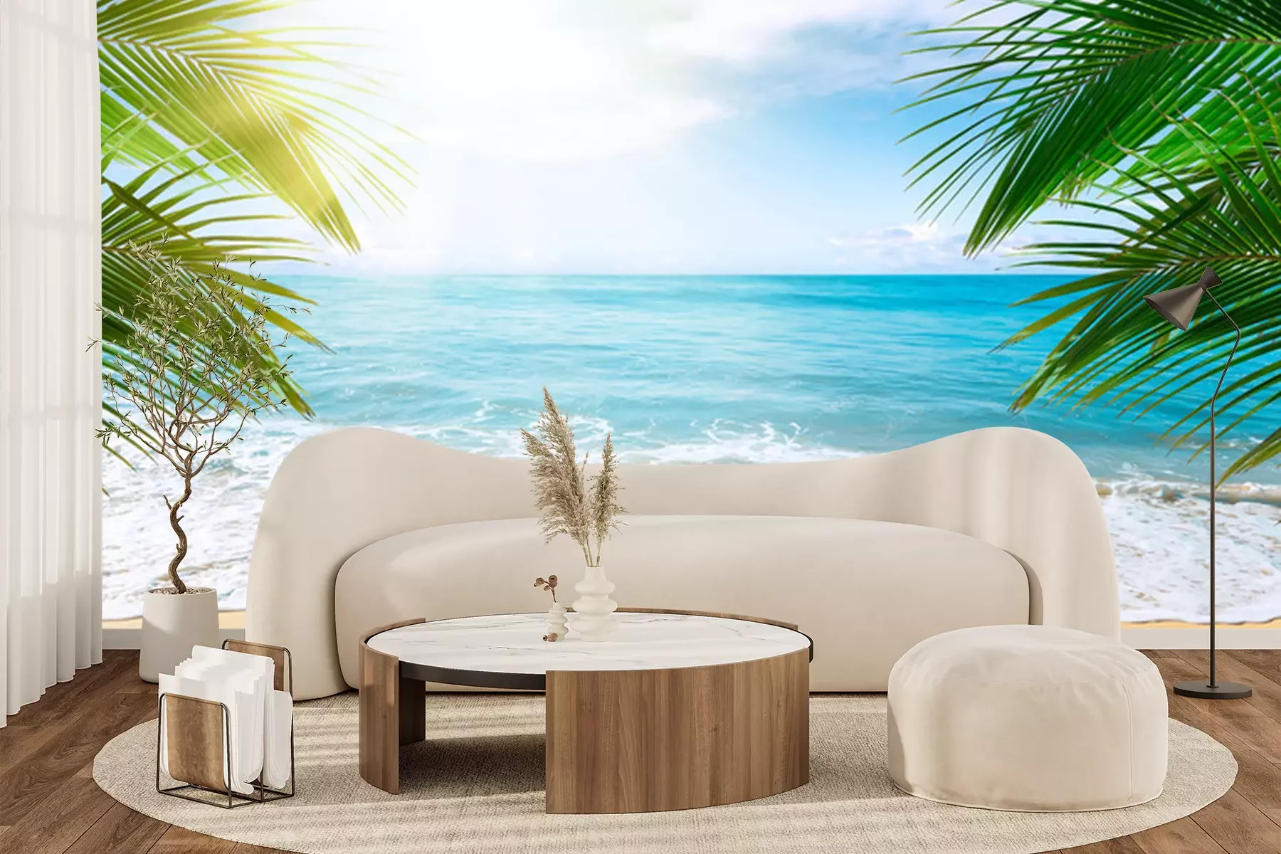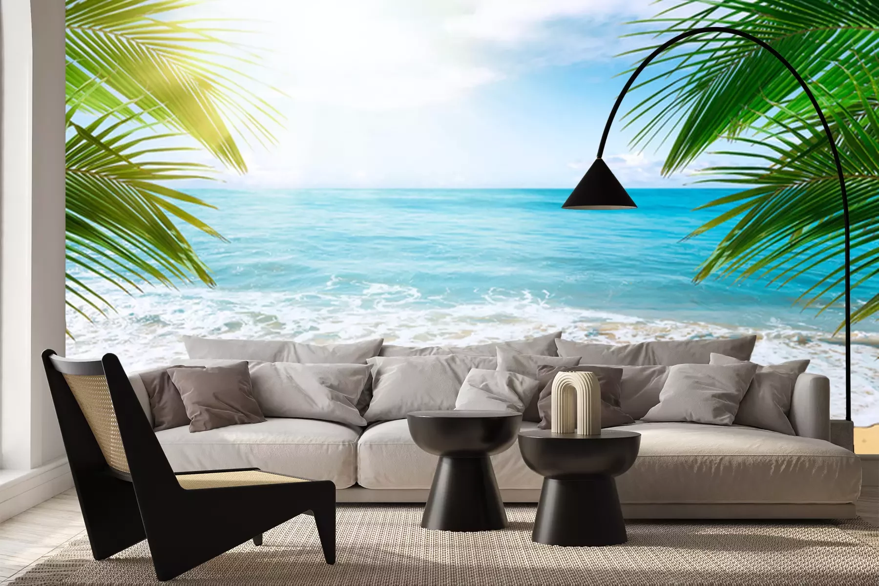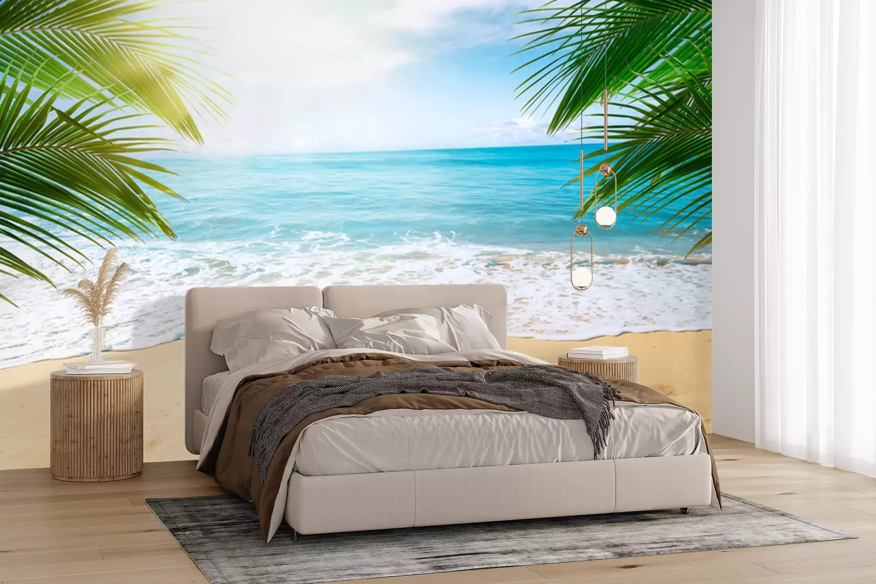 Papier peint  Palmiers, plage et océan