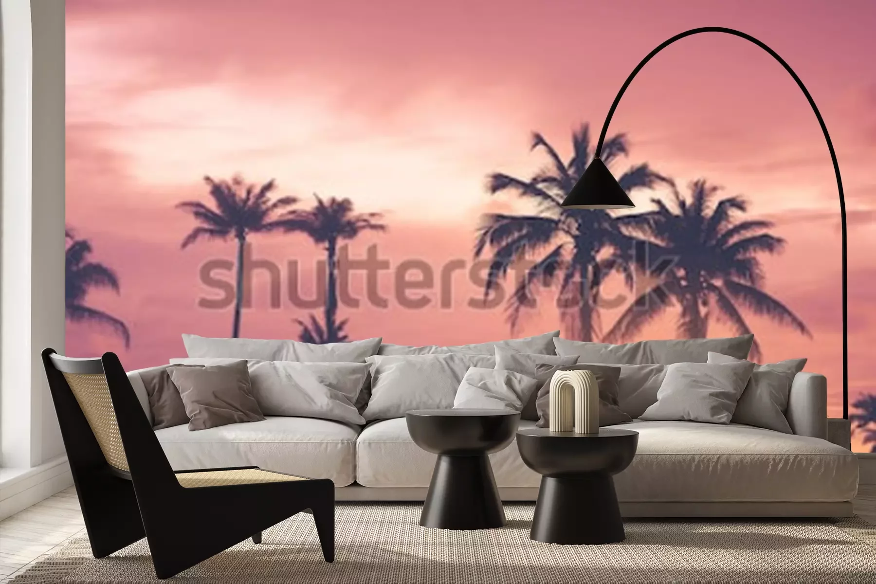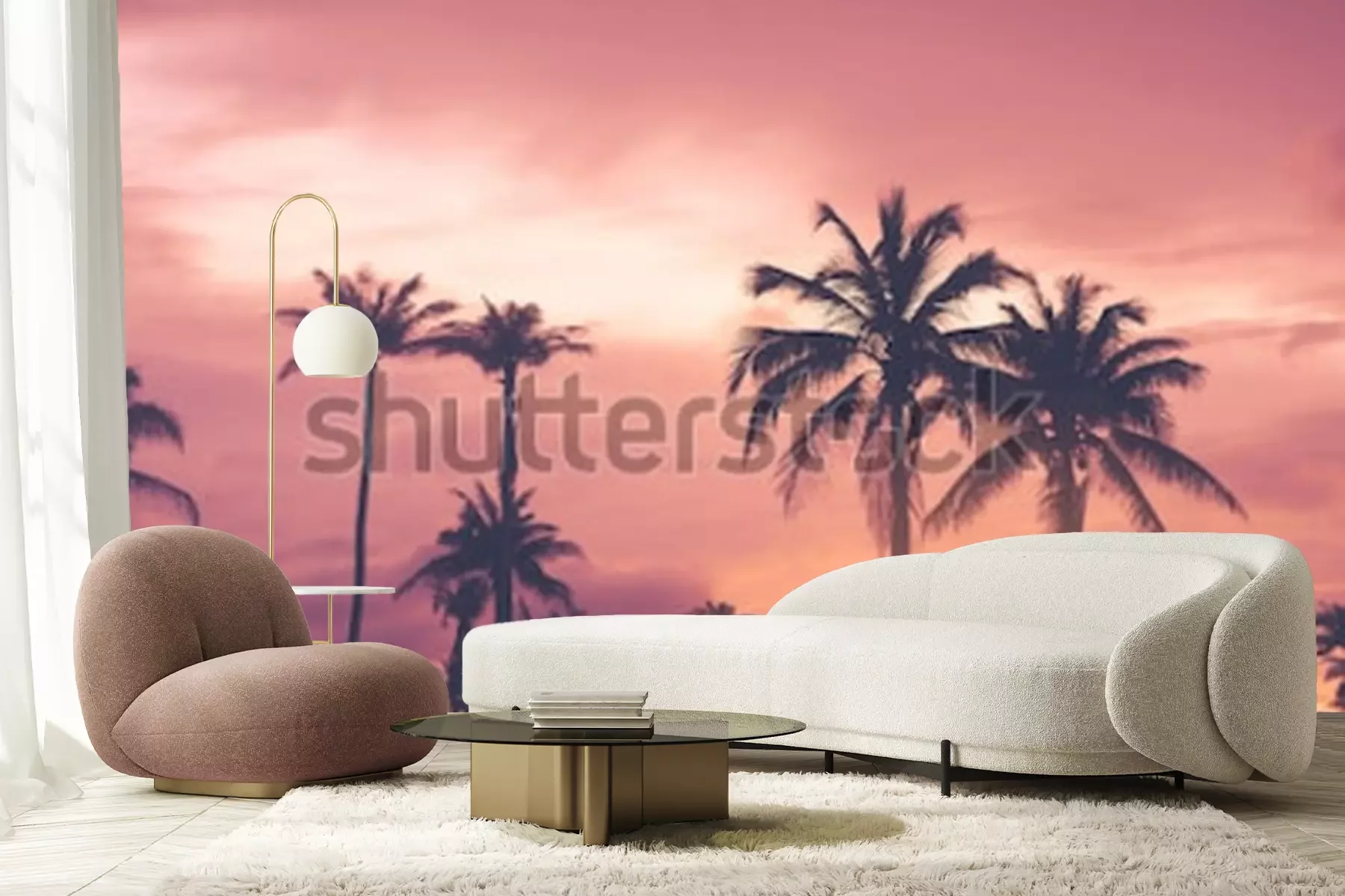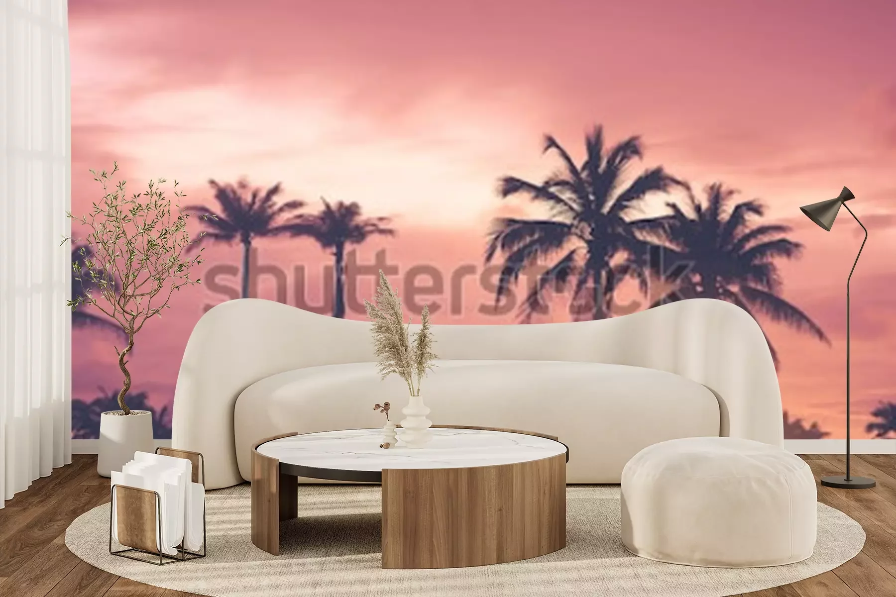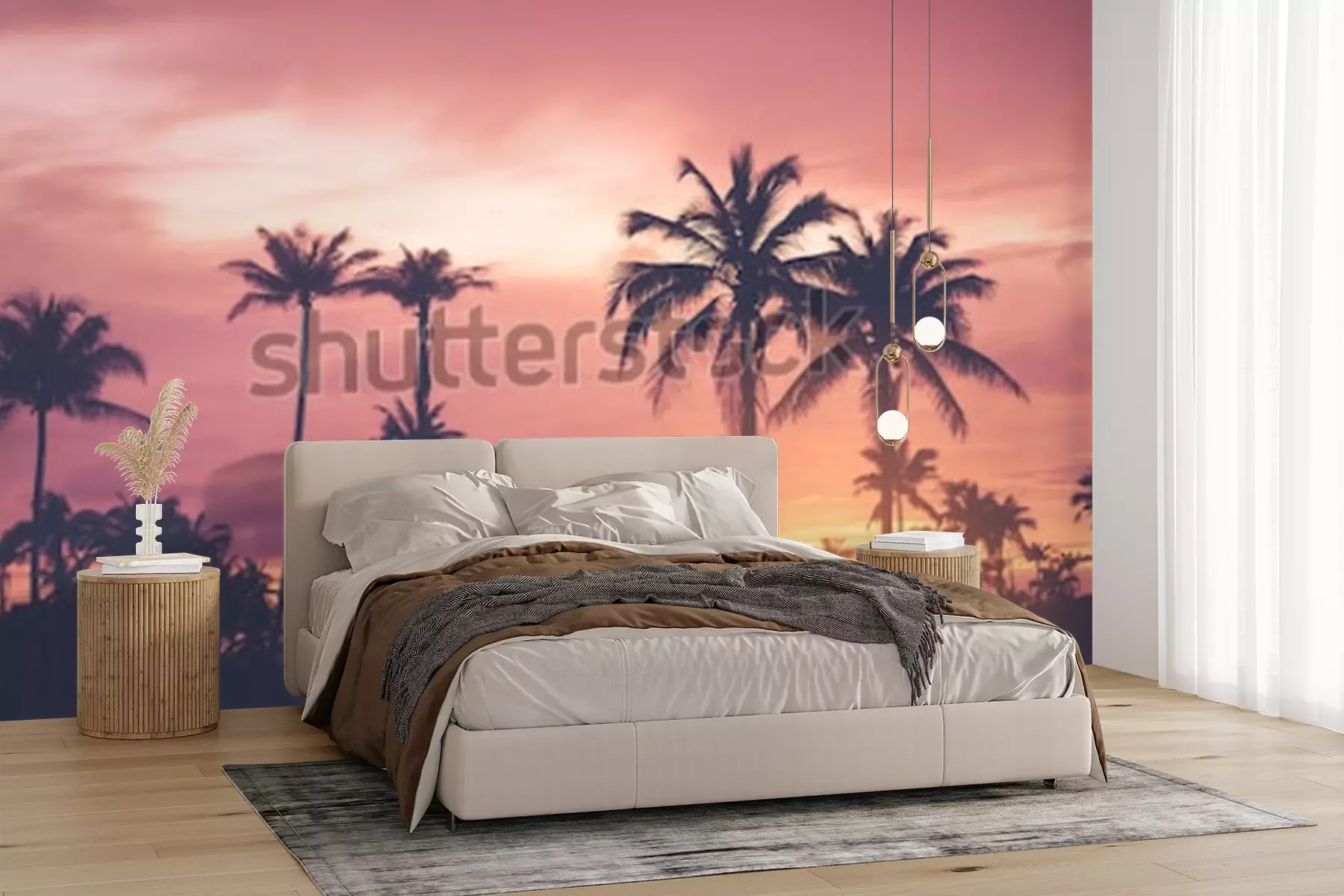 Papier peint  Palmiers tropicaux au coucher du soleil