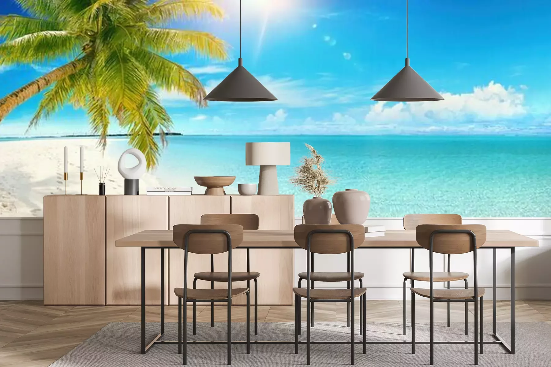 Palmiers au bord de la piscinePapier peint