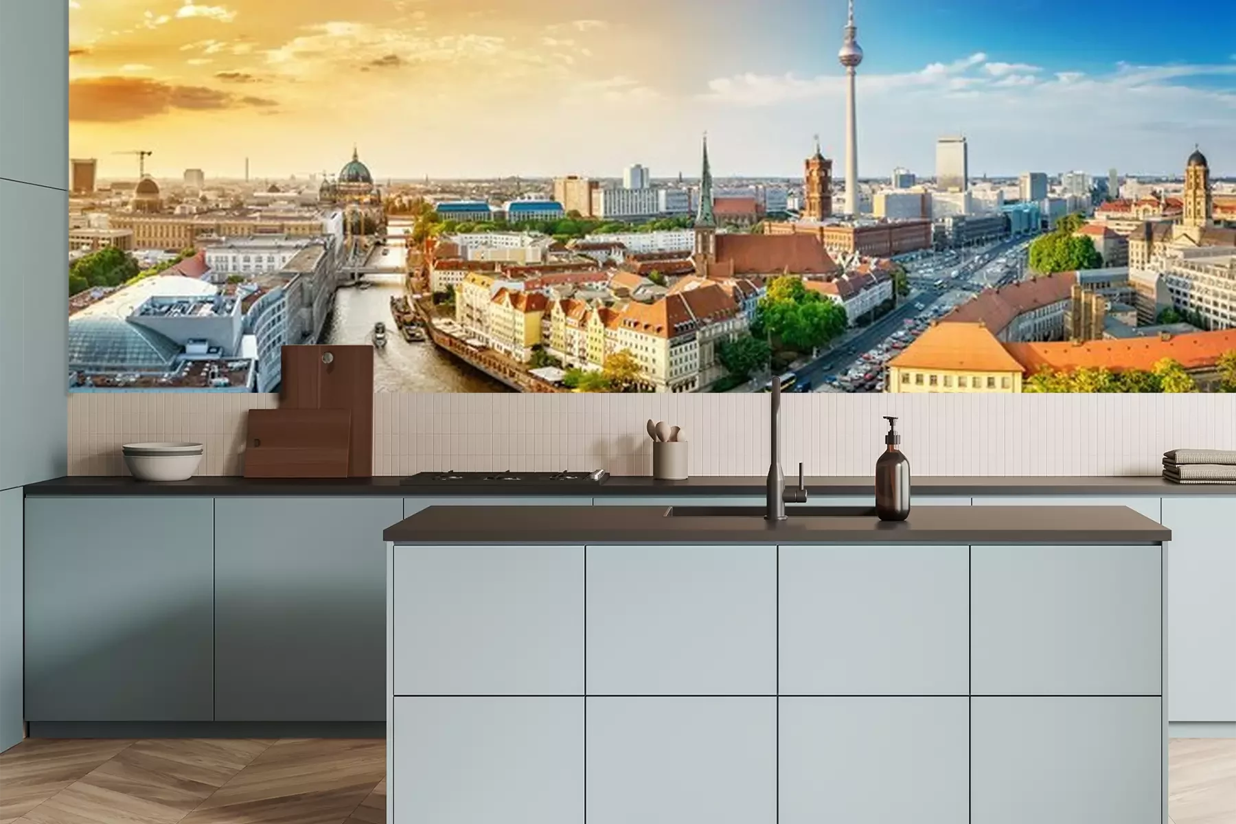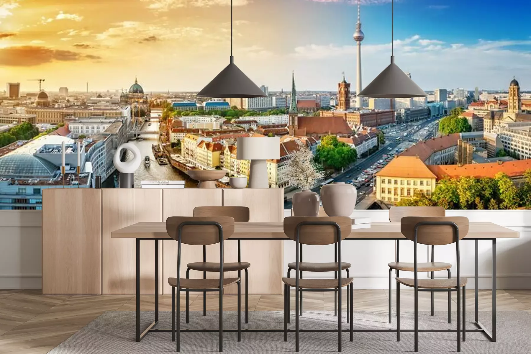 Papier peint  Panorama de la ville au coucher du soleil
