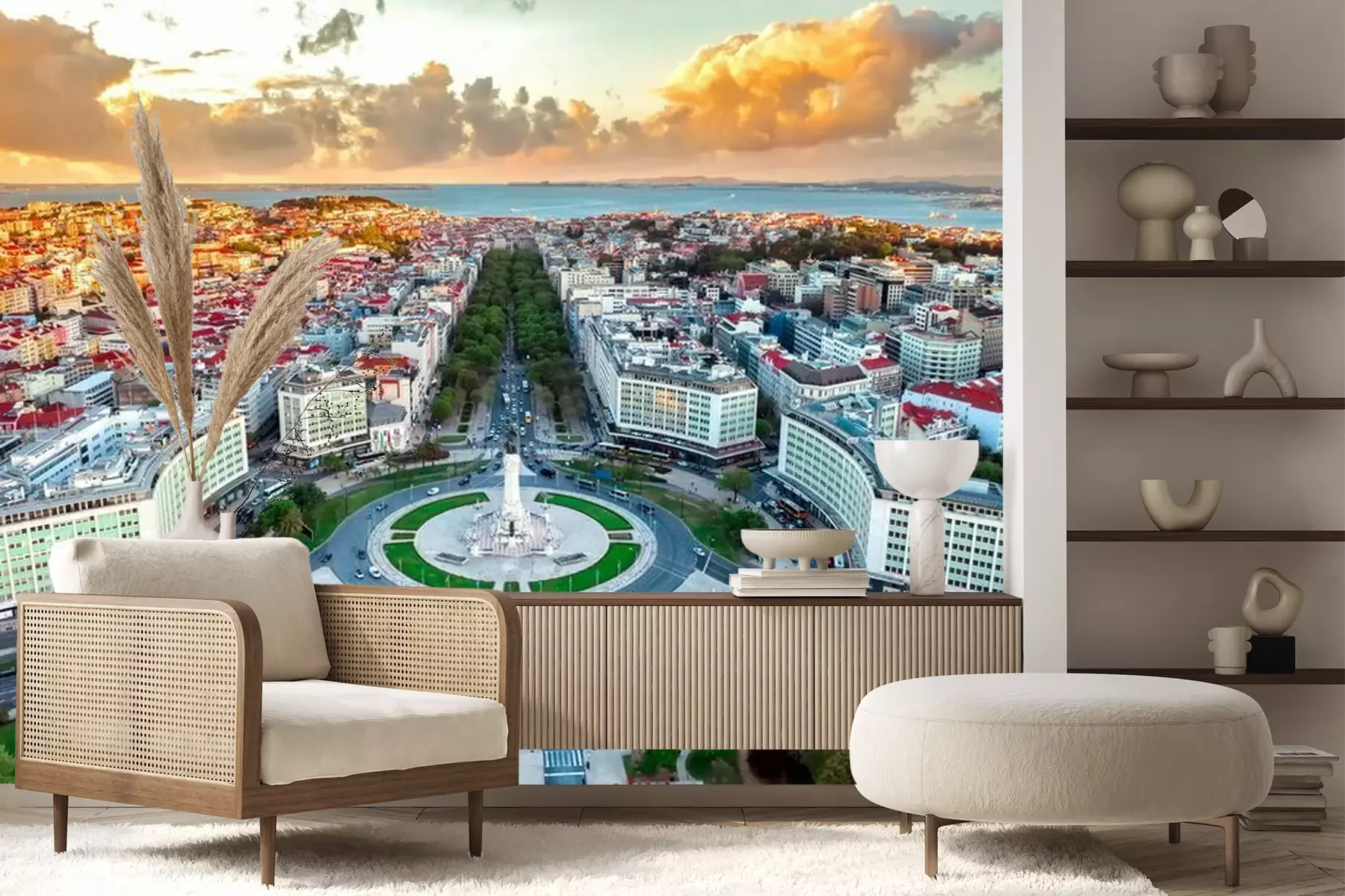 Papier peint  Panorama de Lisbonne vue aérienne