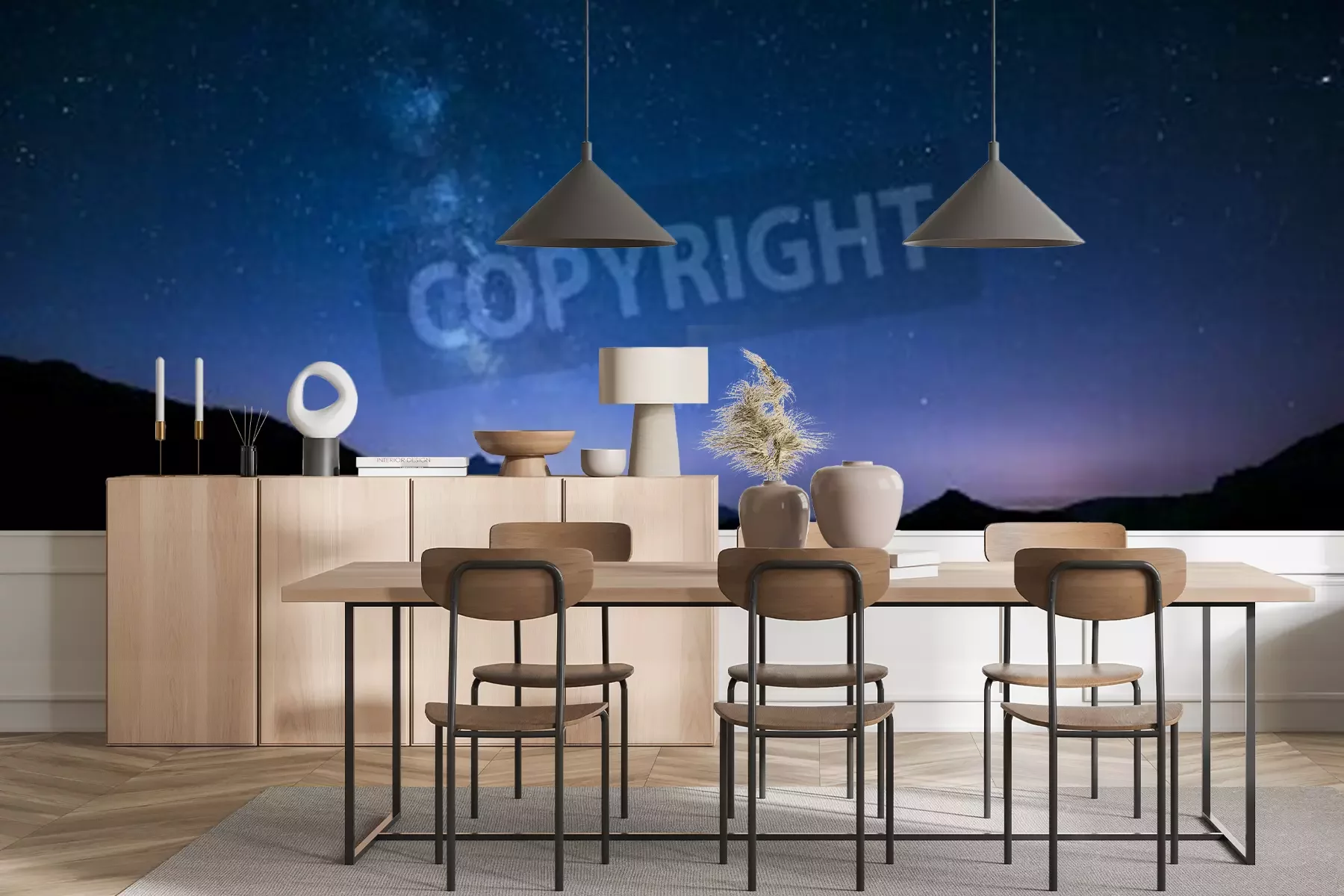Papier peint  Panorama de nuit avec des étoiles