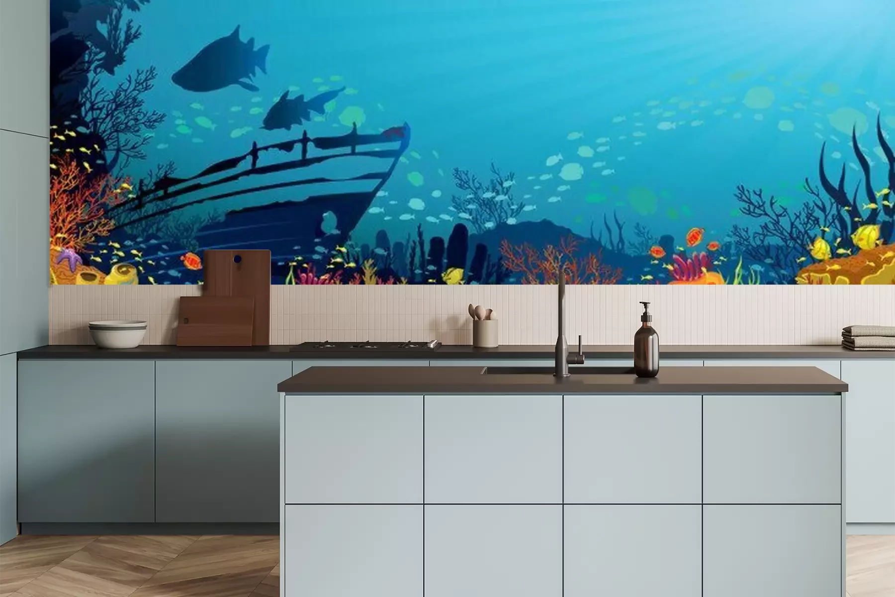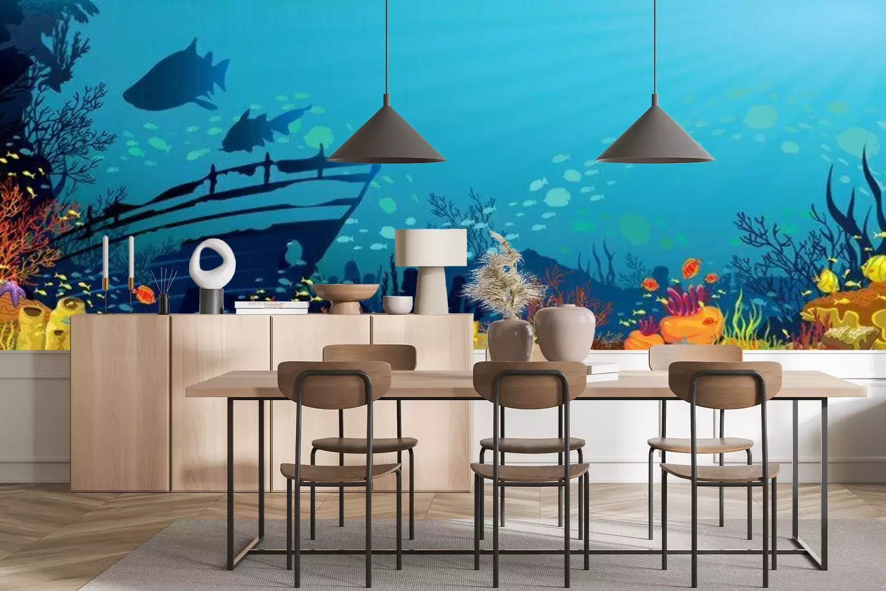 Papier peint  Panorama graphique d'un récif corallien océanique