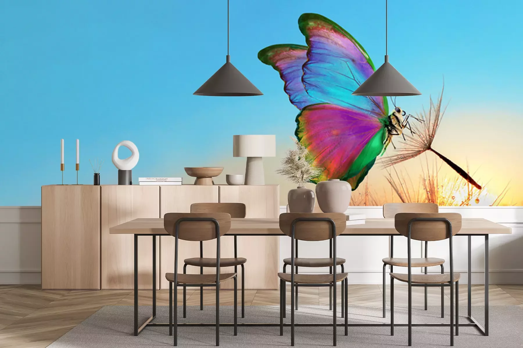 Papier peint  Papillon Morpho et aigrettes de pissenlit