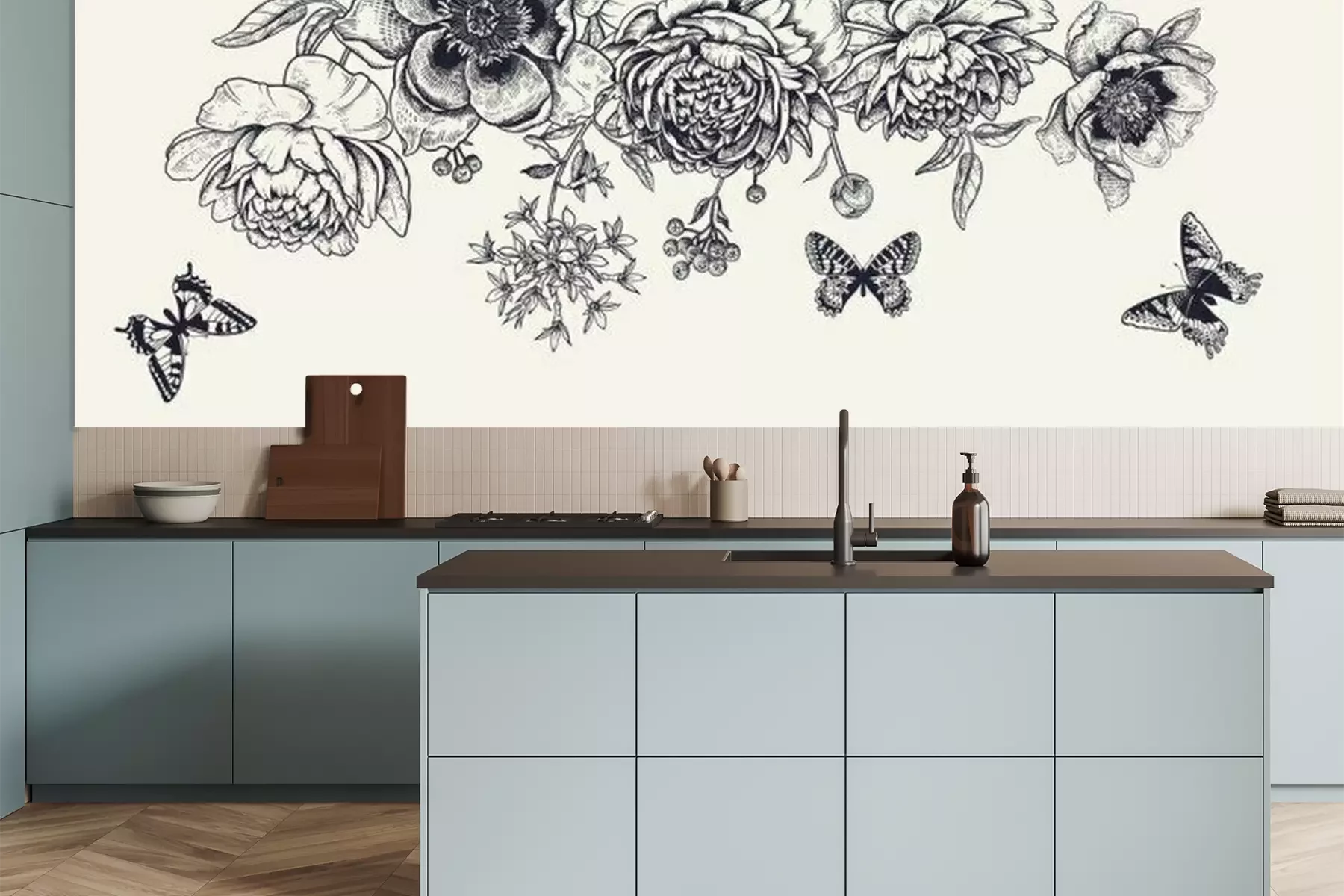 Oiseau parmi fleurs et papillons de style vintageLivraison sans problème assurée par des transporteurs de confiance