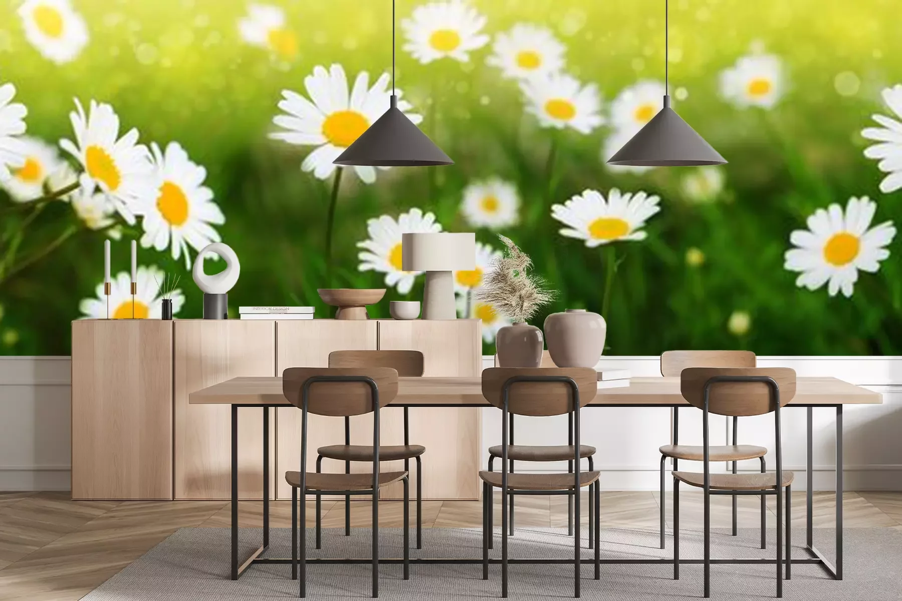 Papier peint  Pâquerettes clairière et soleil