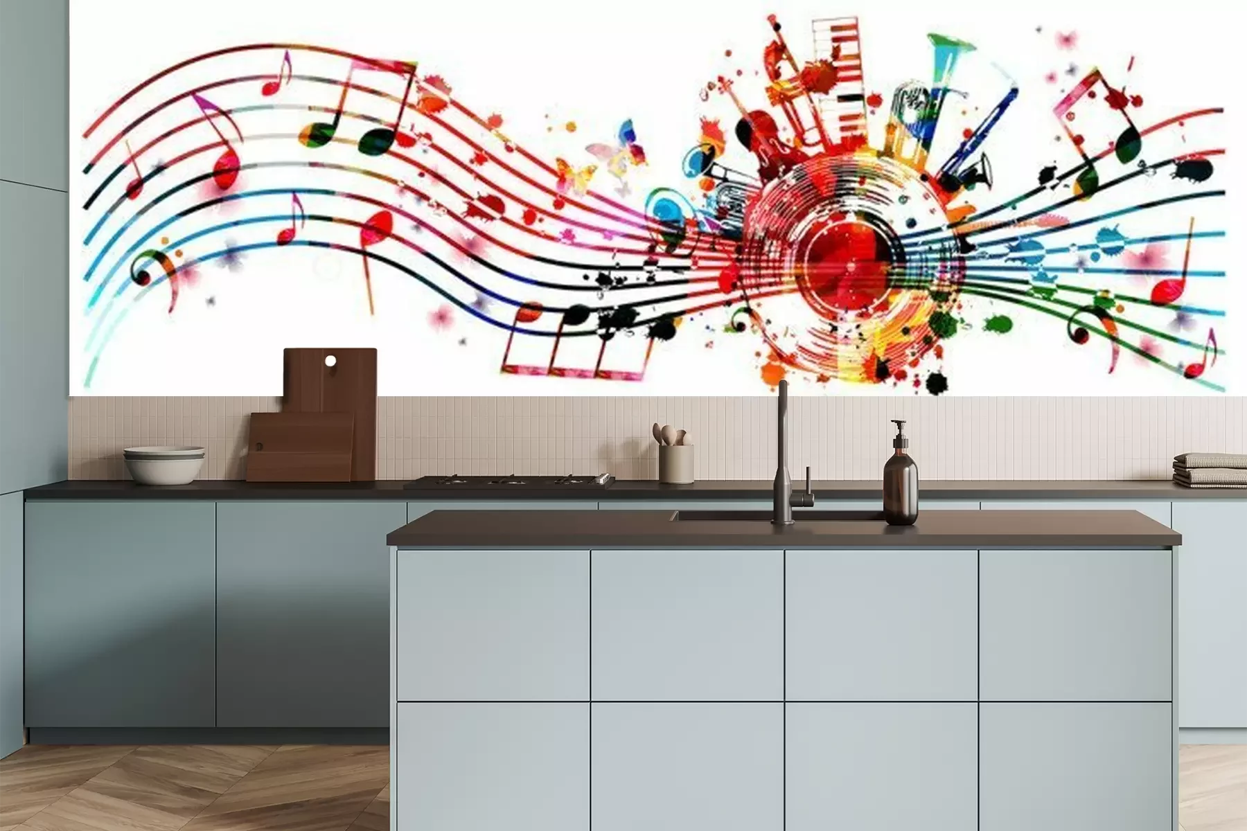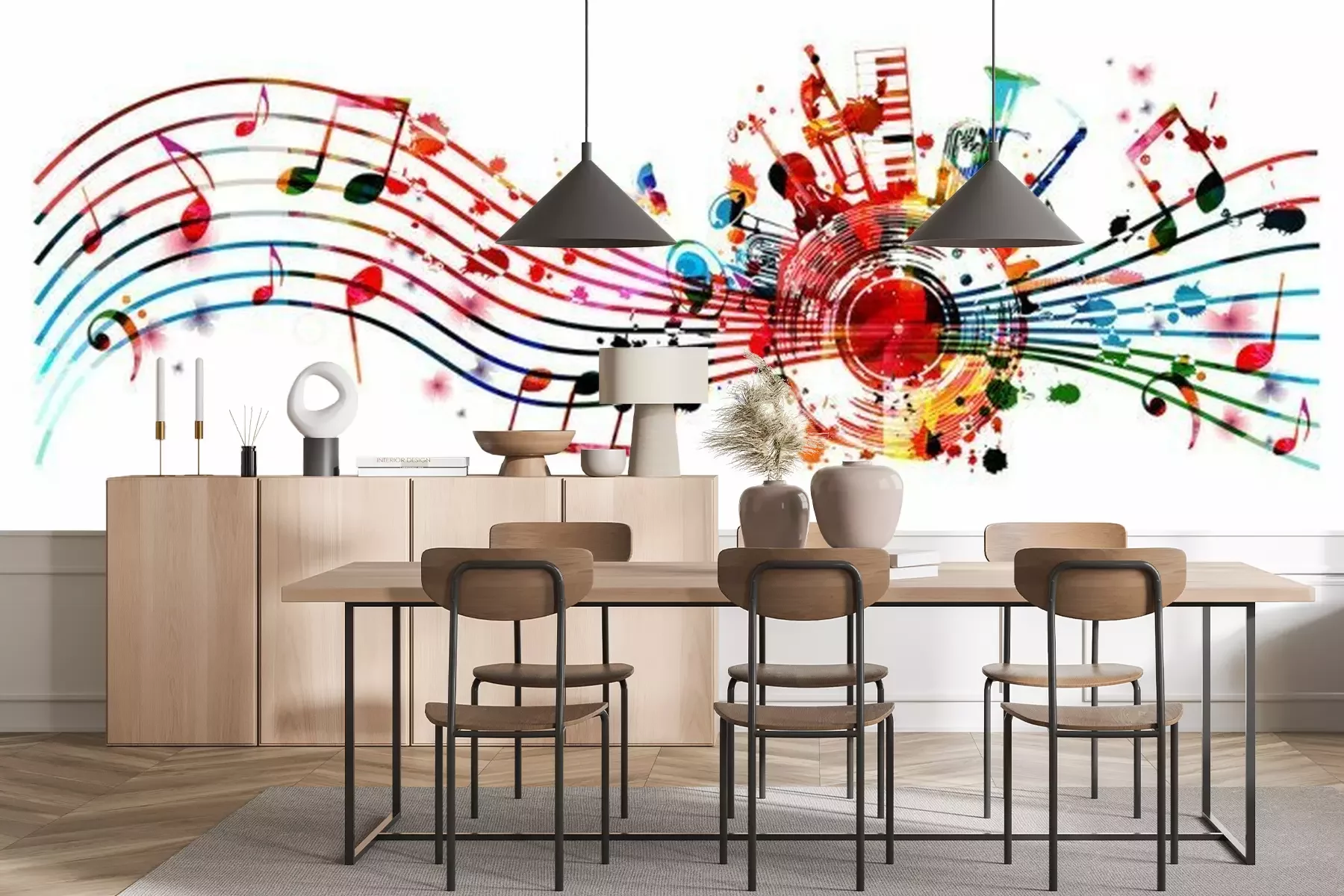 Papier peint  Partitions et instruments colorés