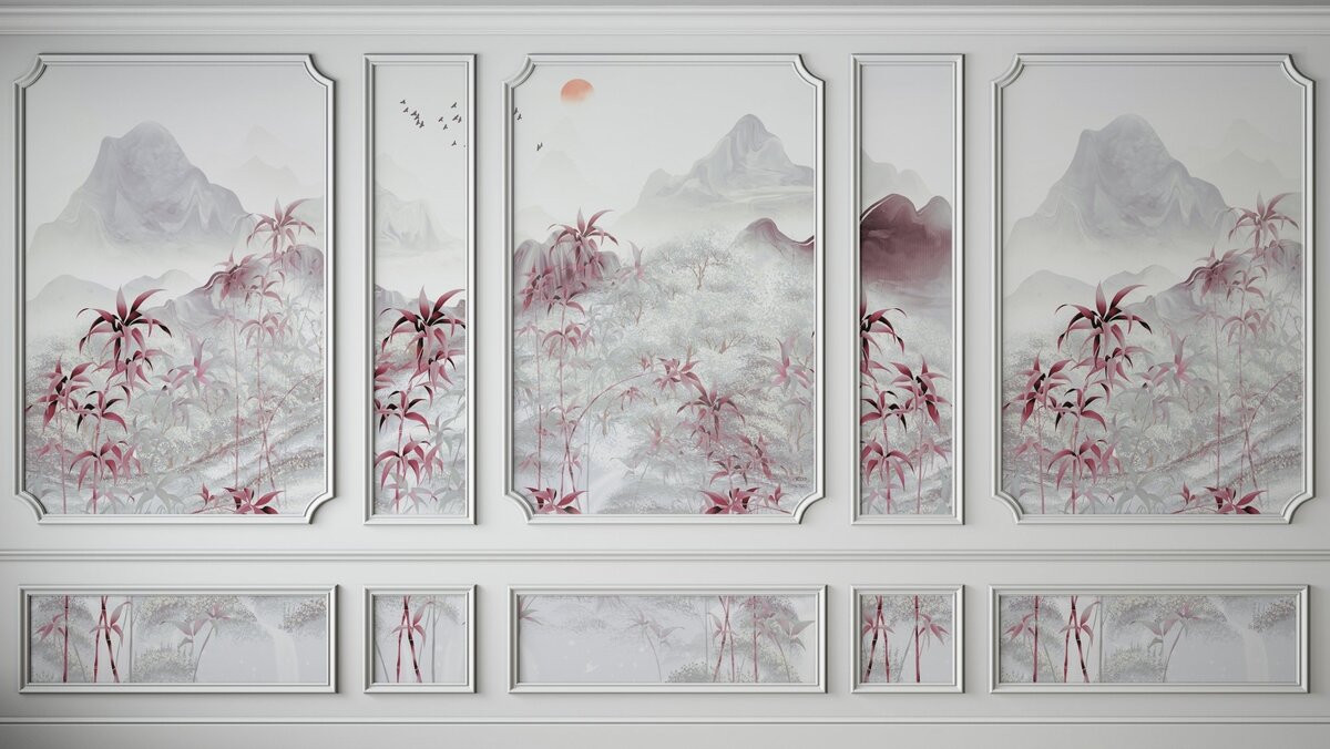 Papier peint : Paysage avec Coucher de Soleil dans un Style Chinois