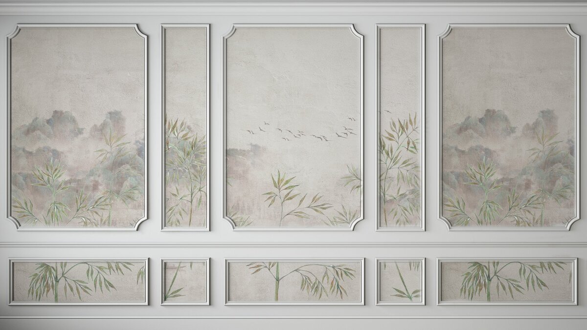 Papier peint : Paysage avec Plantes Vertes en Stuc