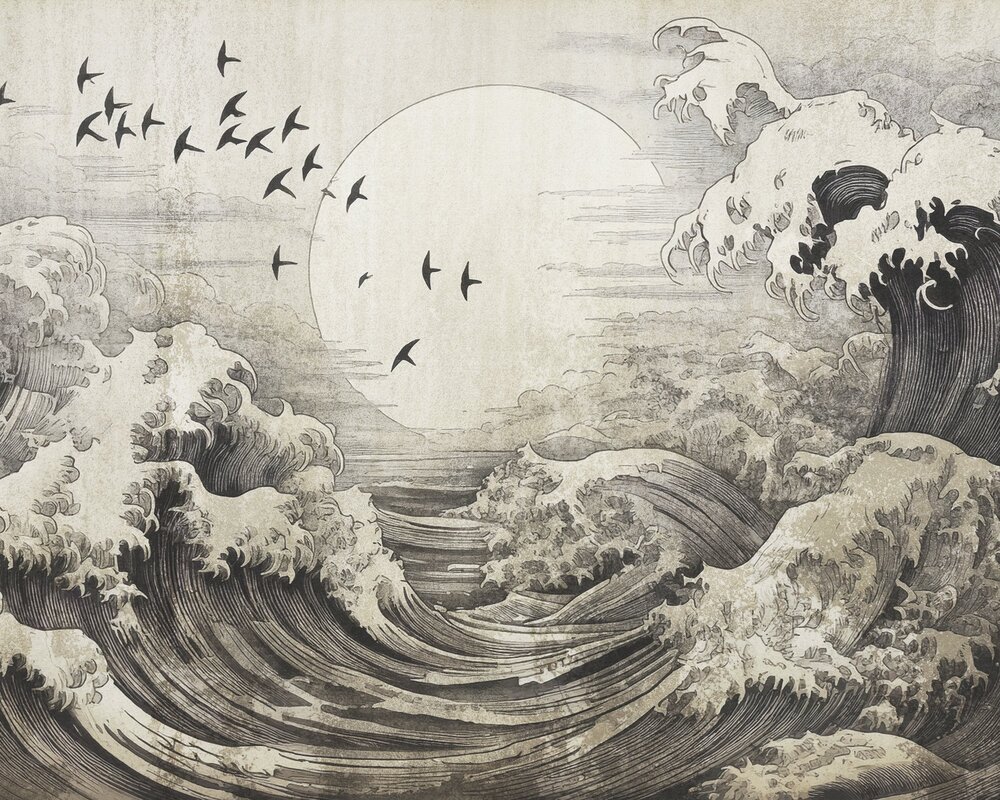 Papier peint : Paysage avec une grosse vague et une pleine lune