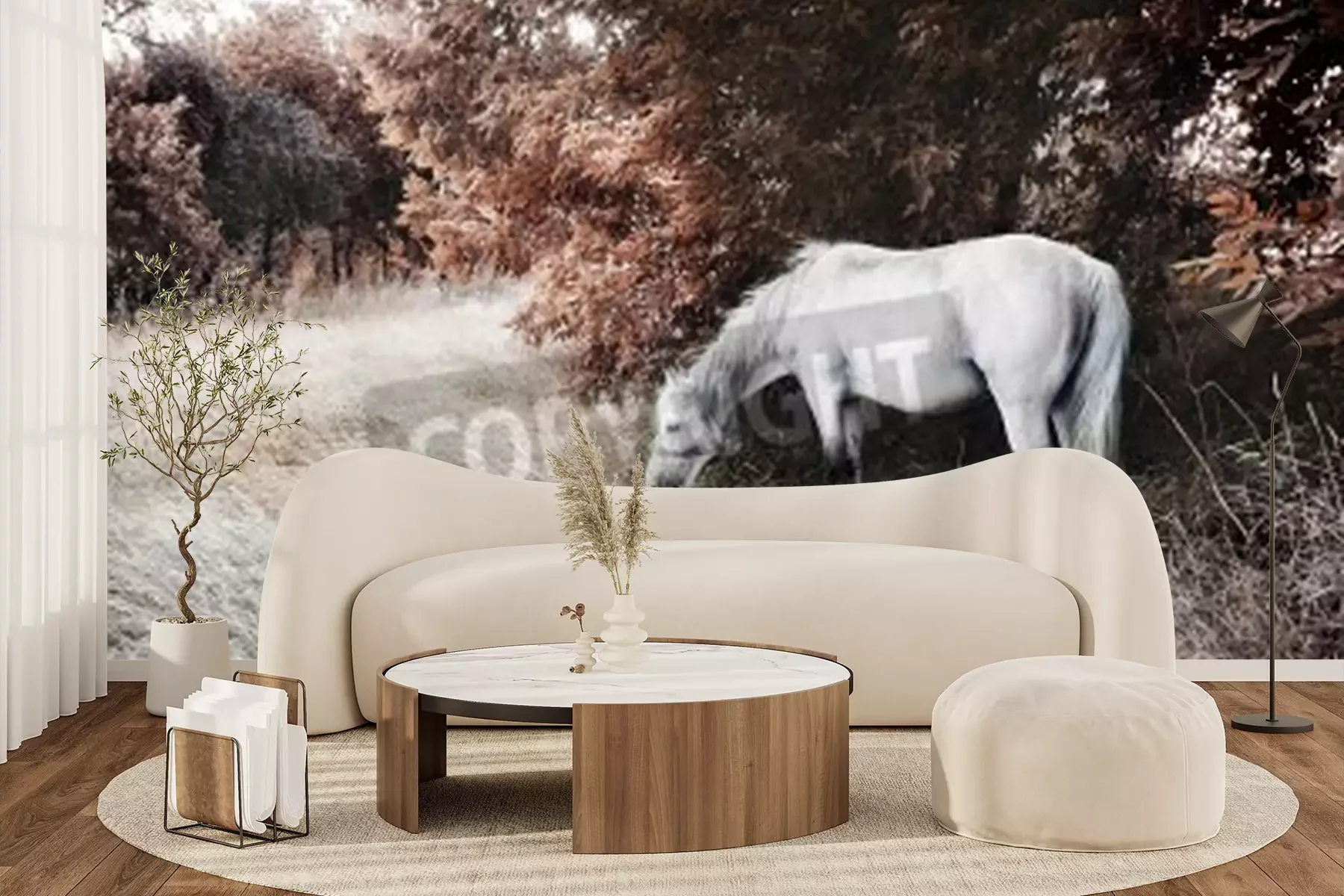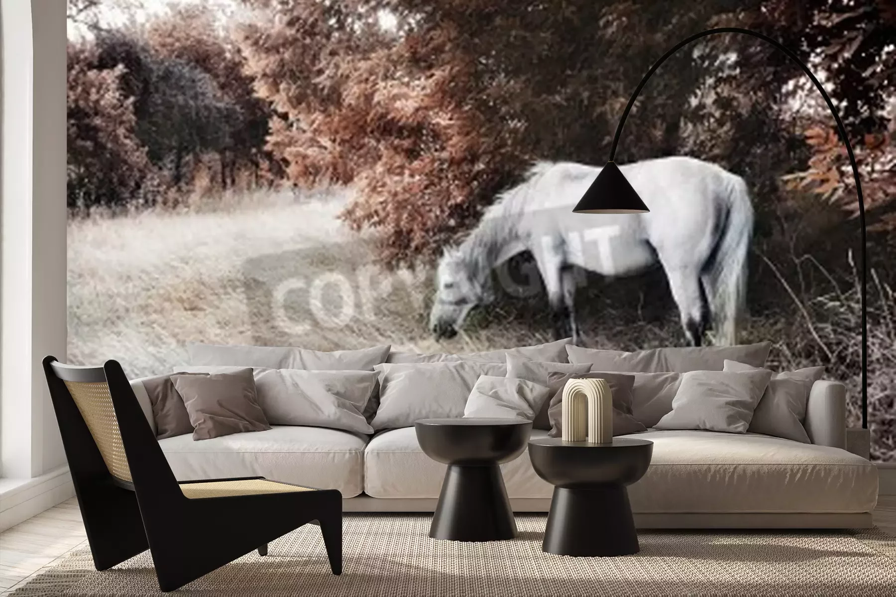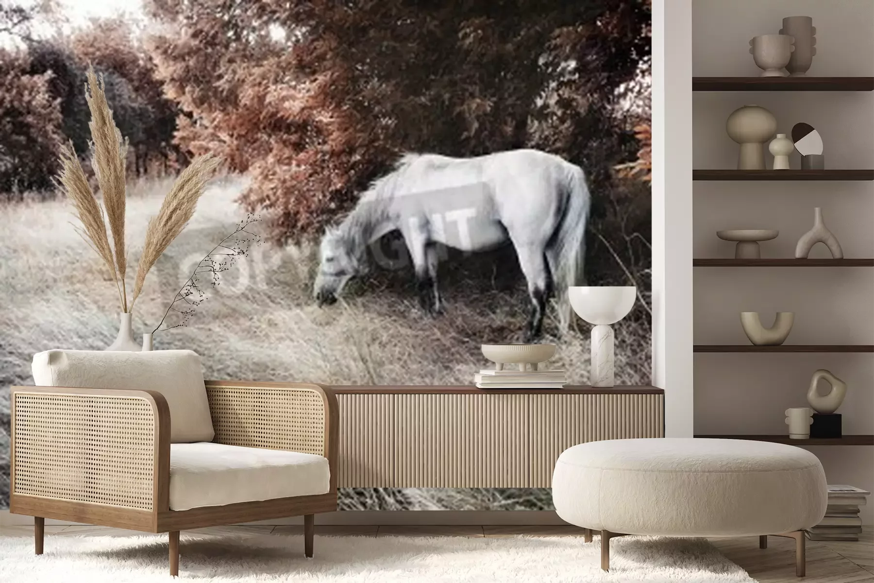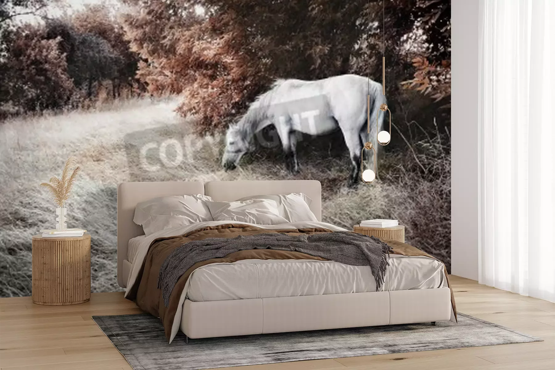 Papier peint  Paysage d'automne avec un cheval