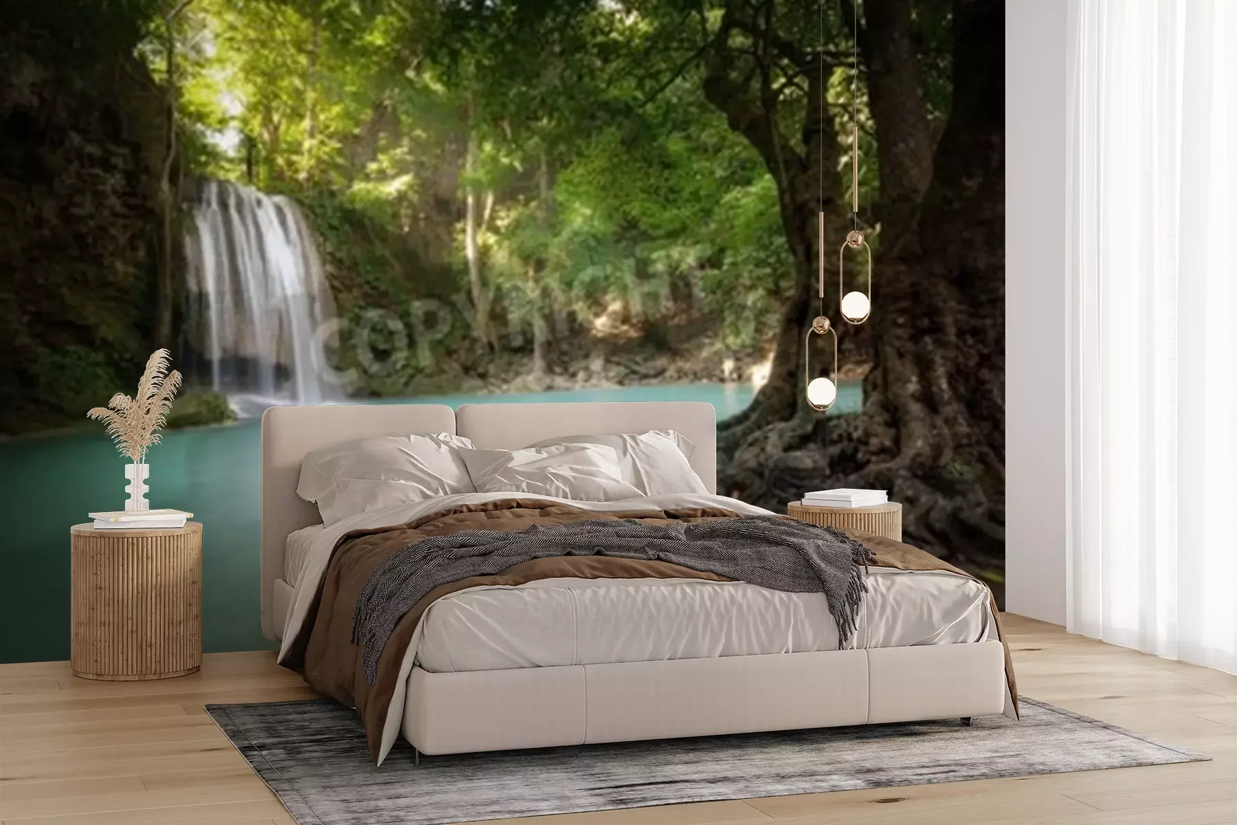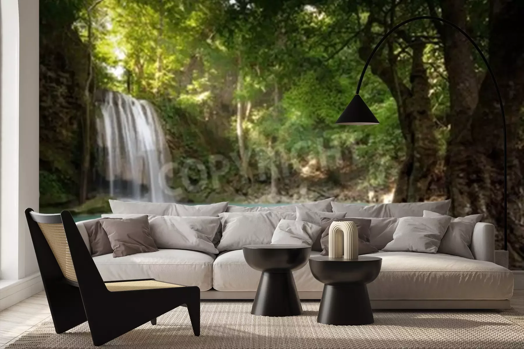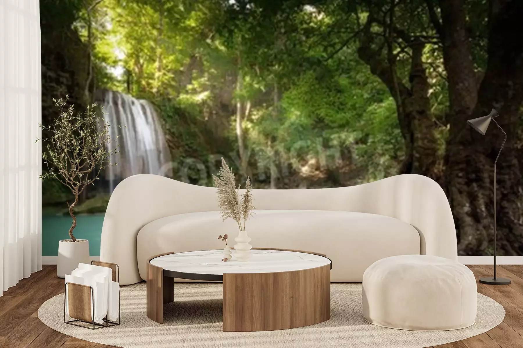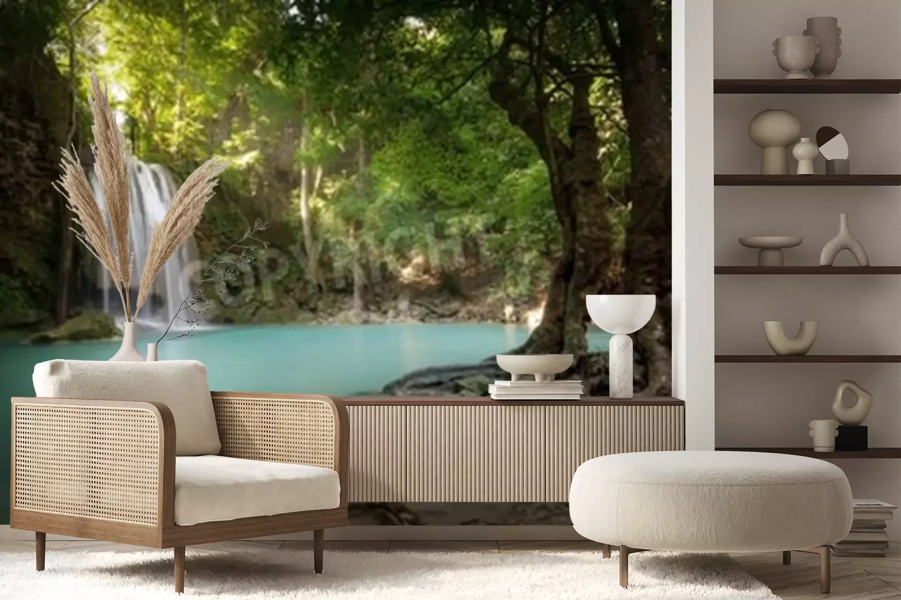 Papier peint  Paysage de jungle avec chute d'eau