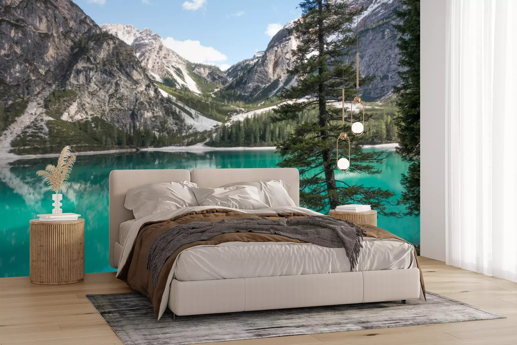Papier peint  Paysage de lac turquoise dans les montagnes
