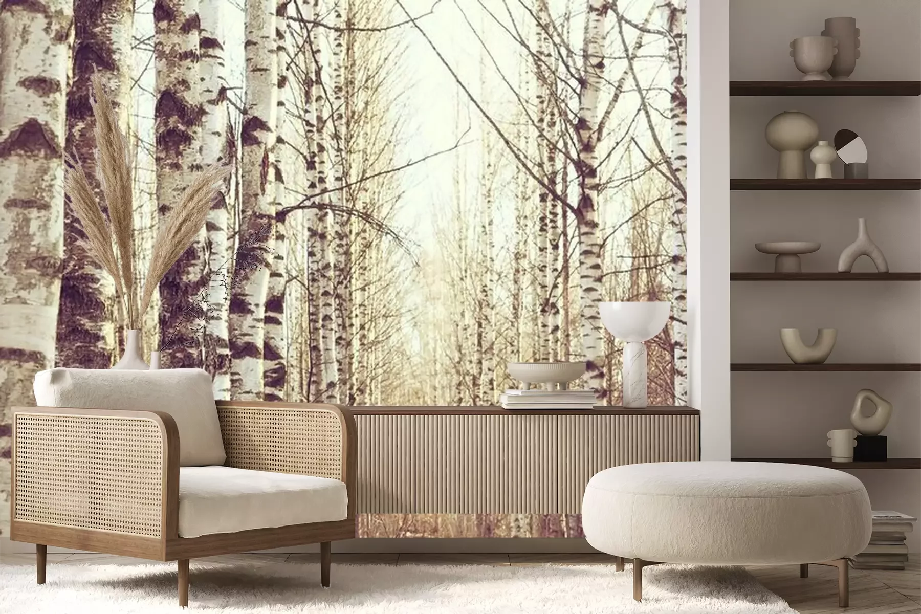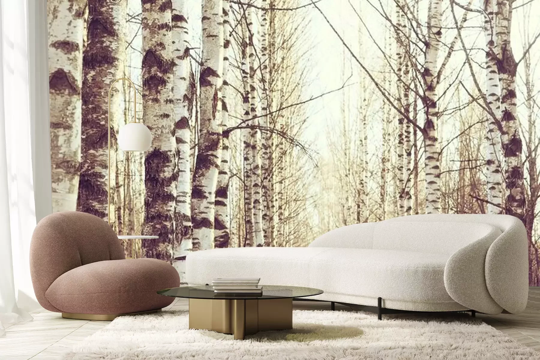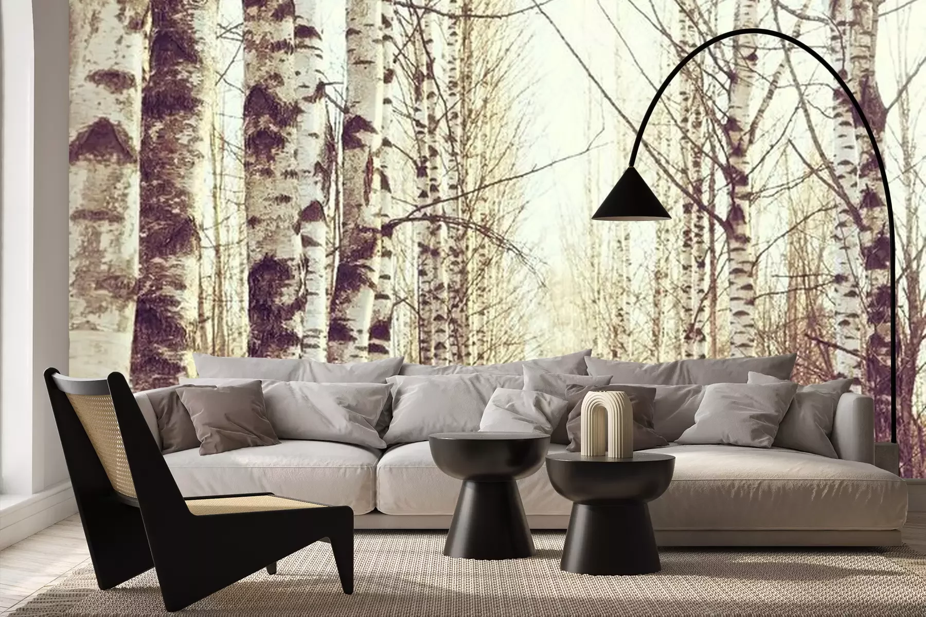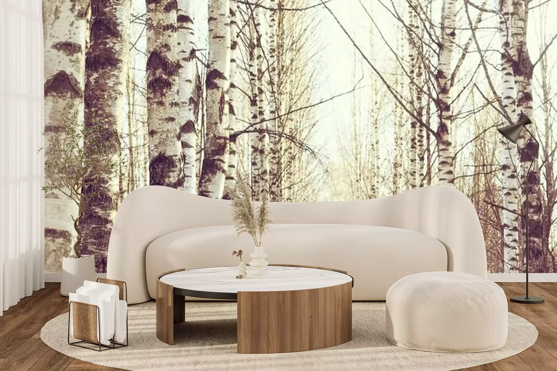 Papier peint  Paysage de mars d'une forêt de bouleaux