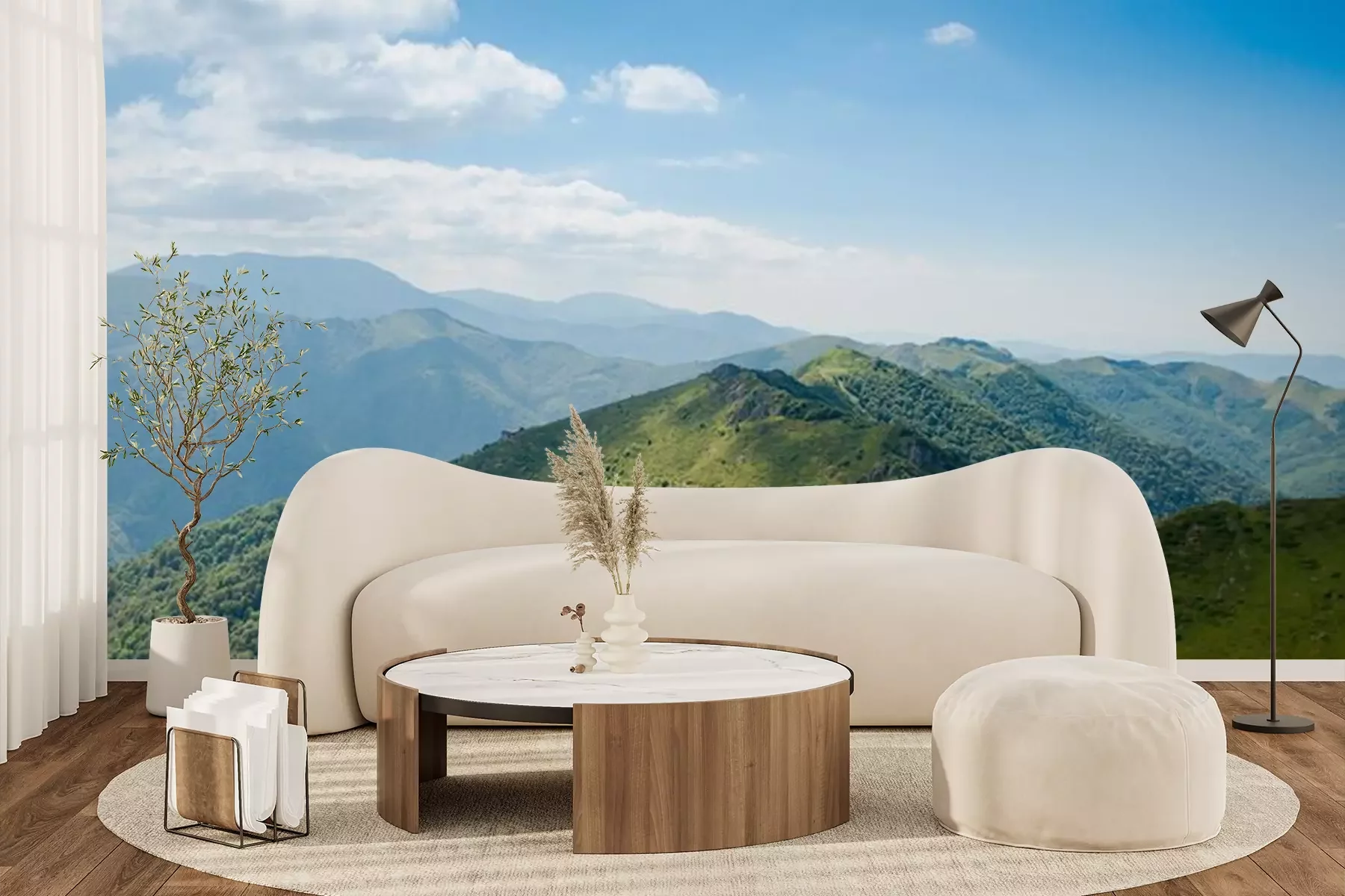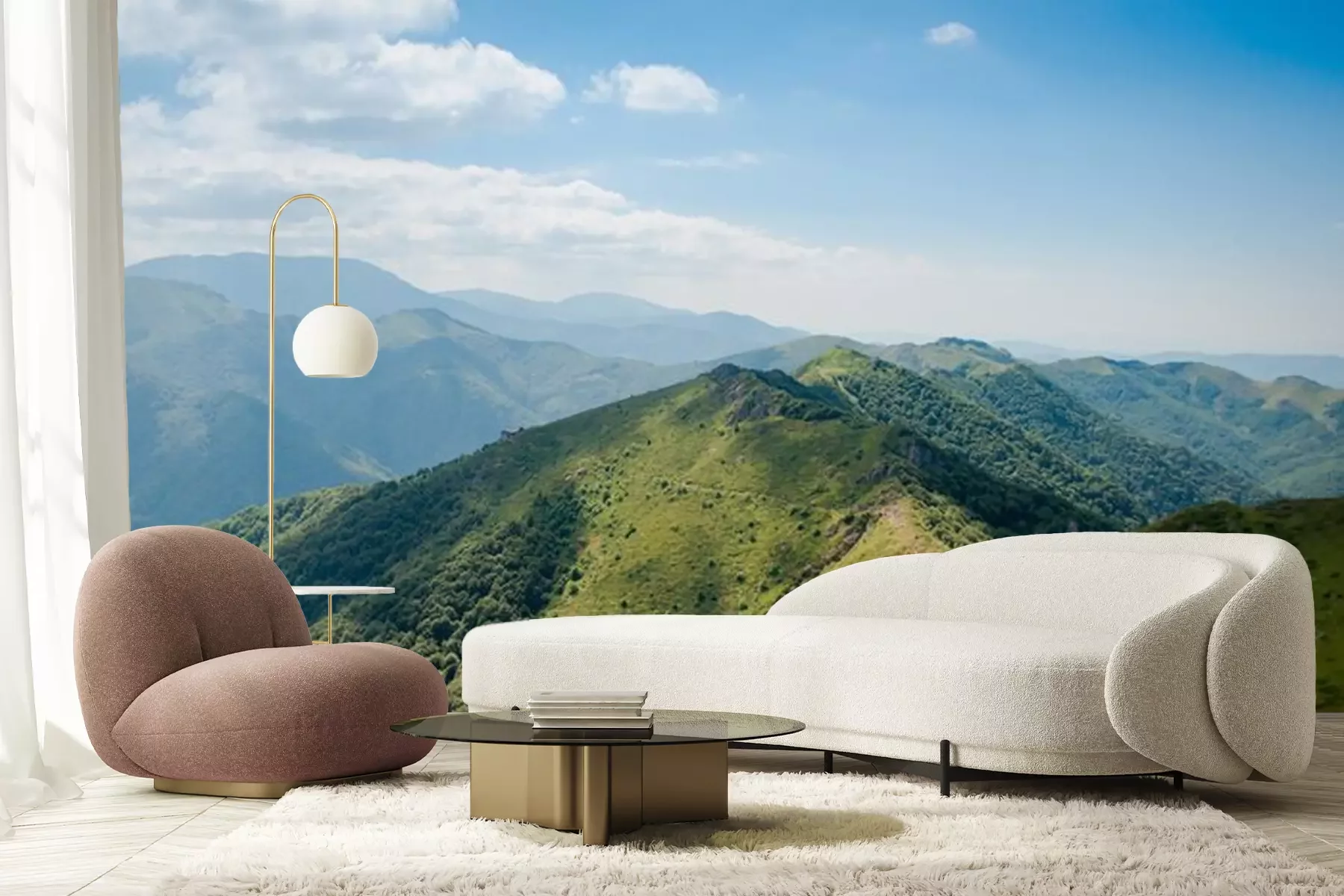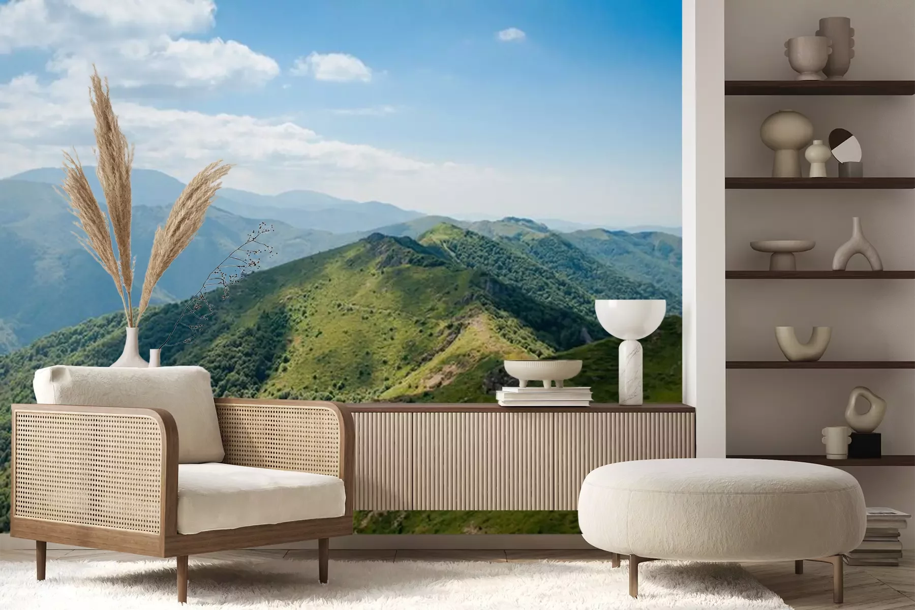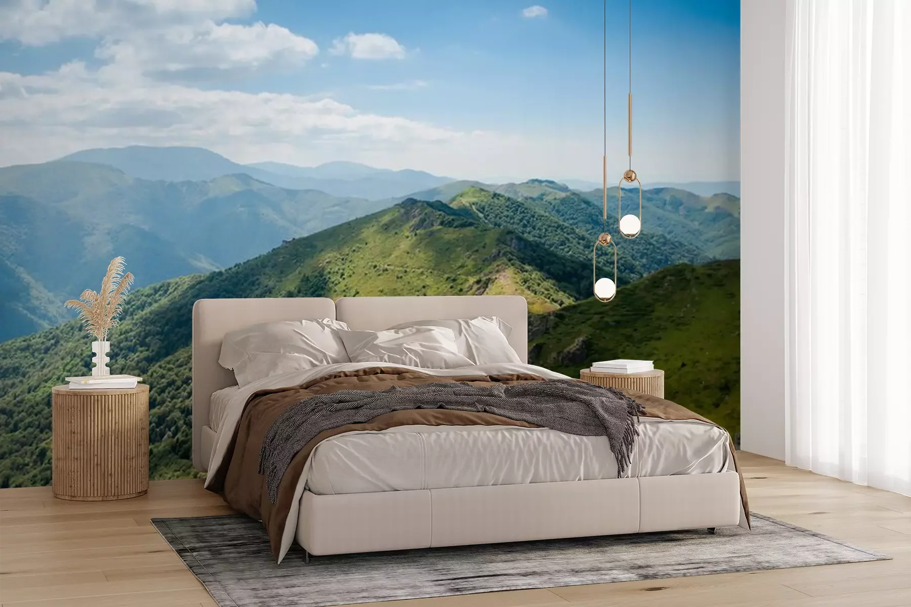Papier peint  Paysage de montagne verte contre le ciel bleu
