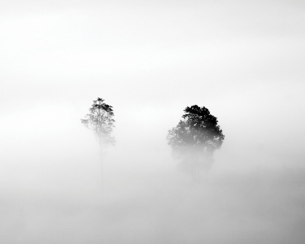 Papier peint : Paysage monochrome d'arbres dans le brouillard