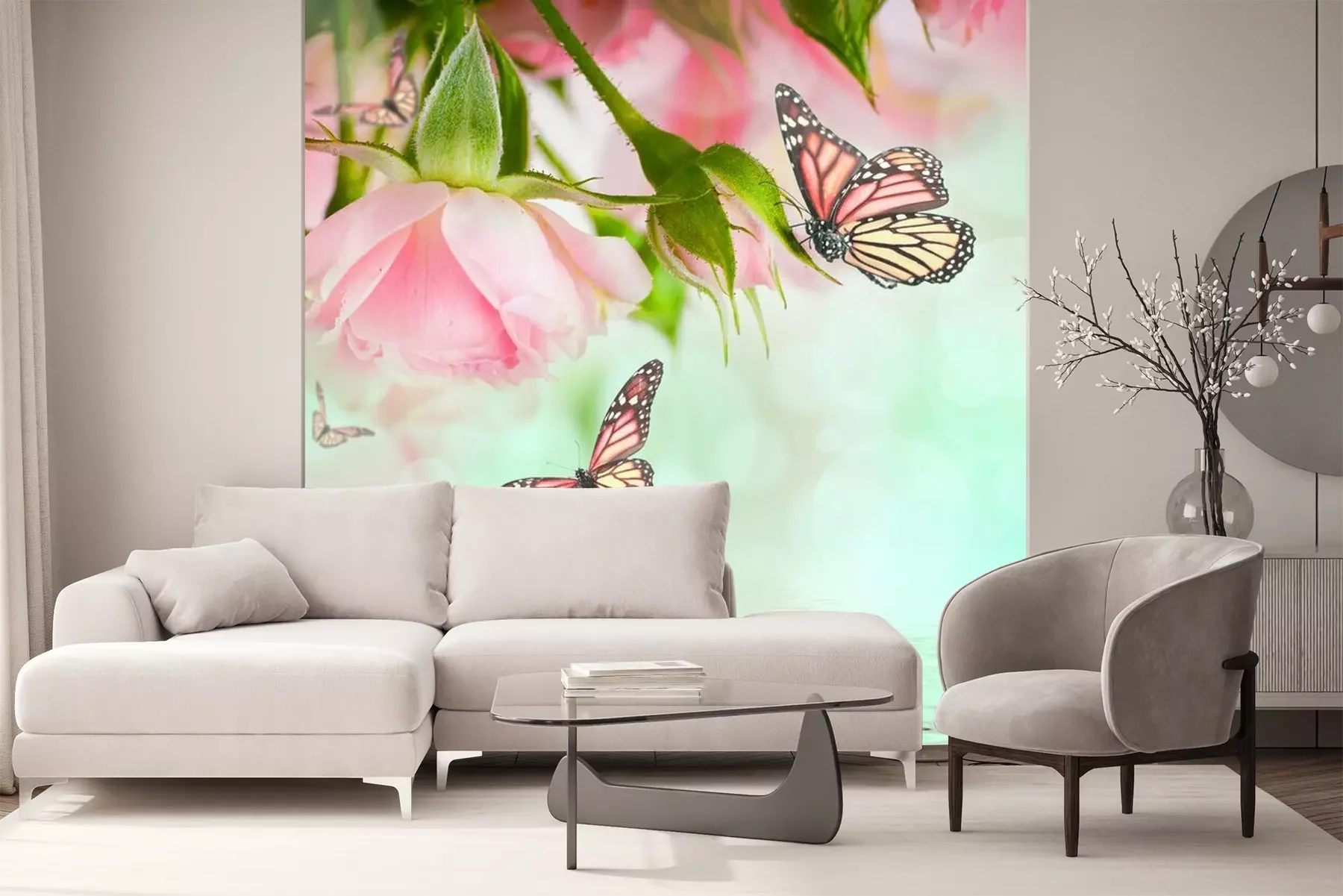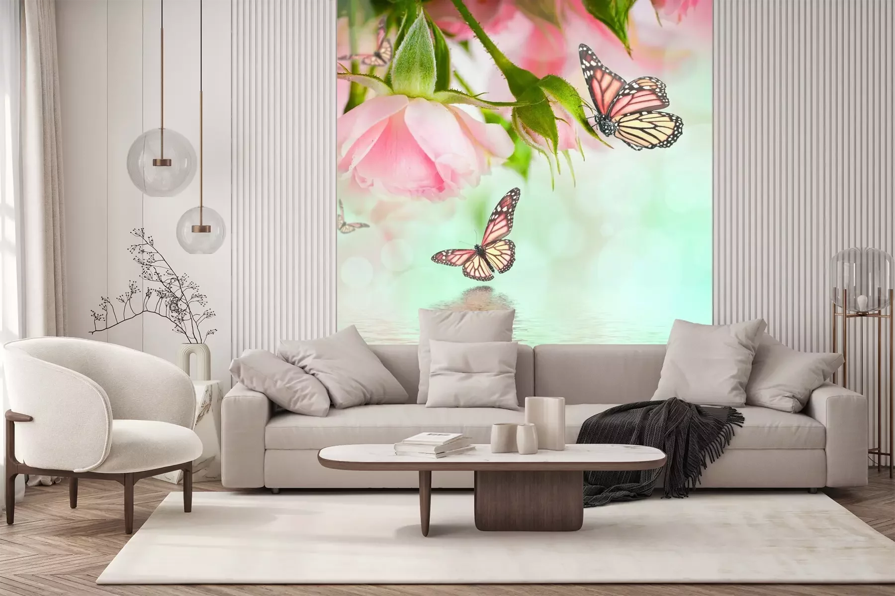 Composition avec orchidées et papillons