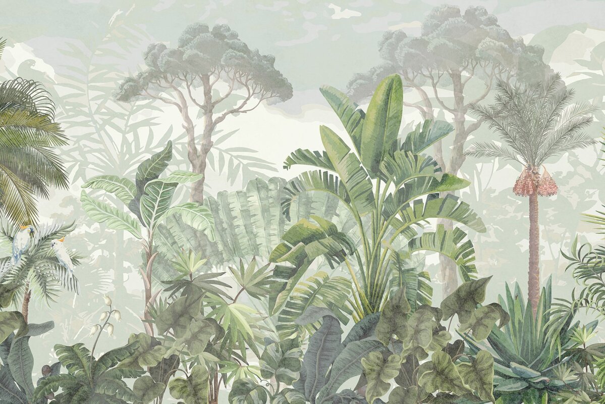 Papier peint : Paysage tropical avec plantes en style aquarelle