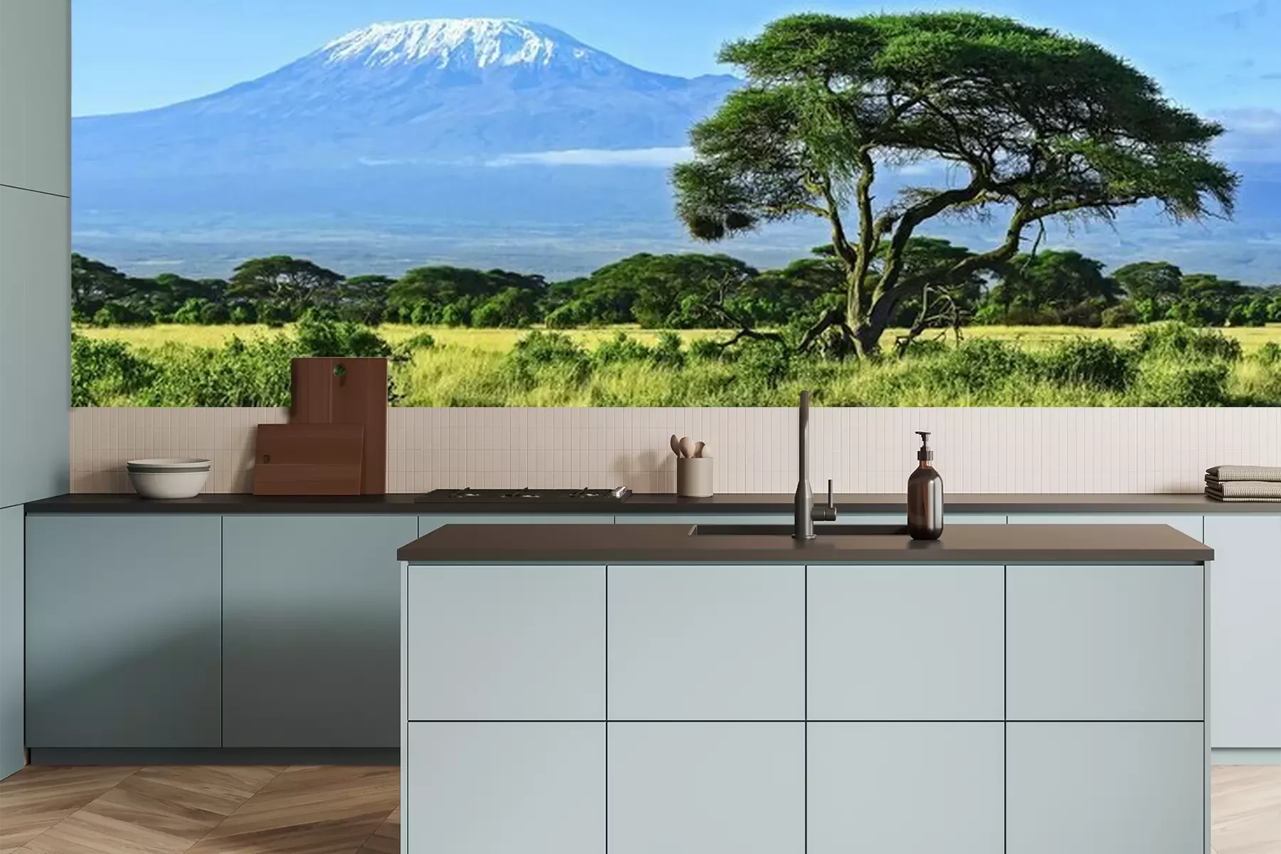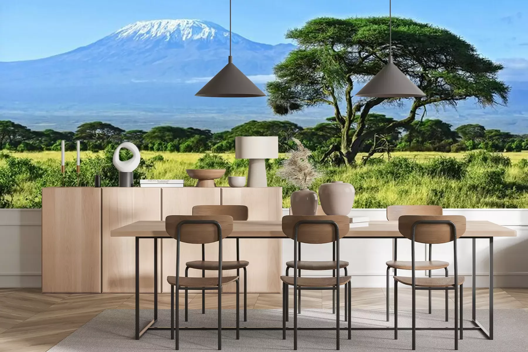 Papier peint  Paysage verdoyant avec le Kilimandjaro en arrière-plan