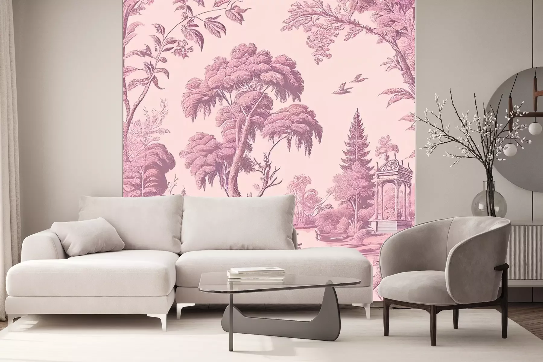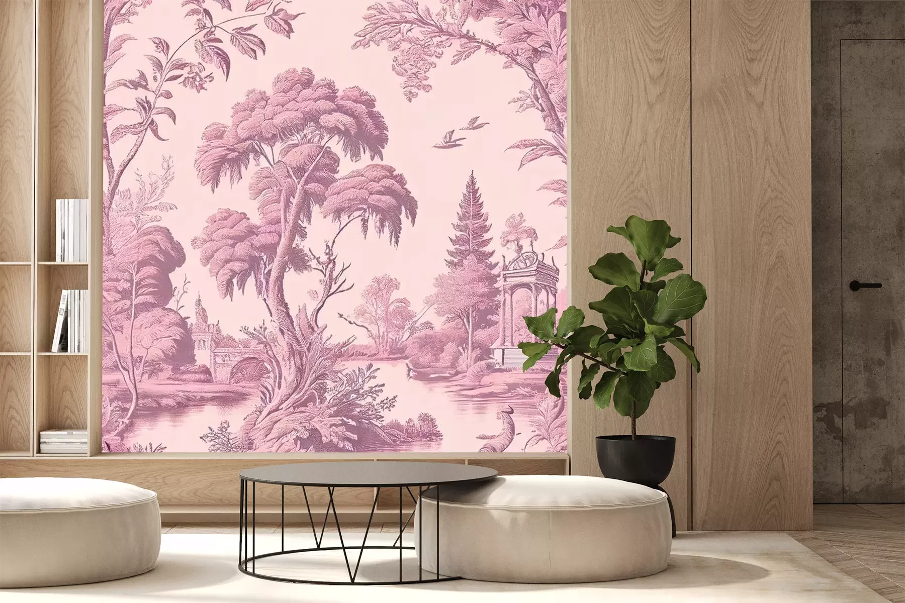 Papier peint  Paysage vintage artistique en rose