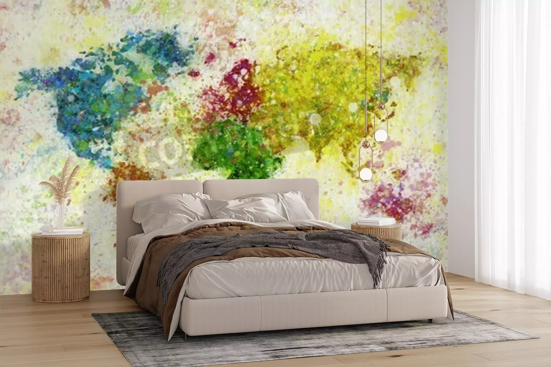 Papier peint  Peinture de carte du monde sur du papier fait à la main