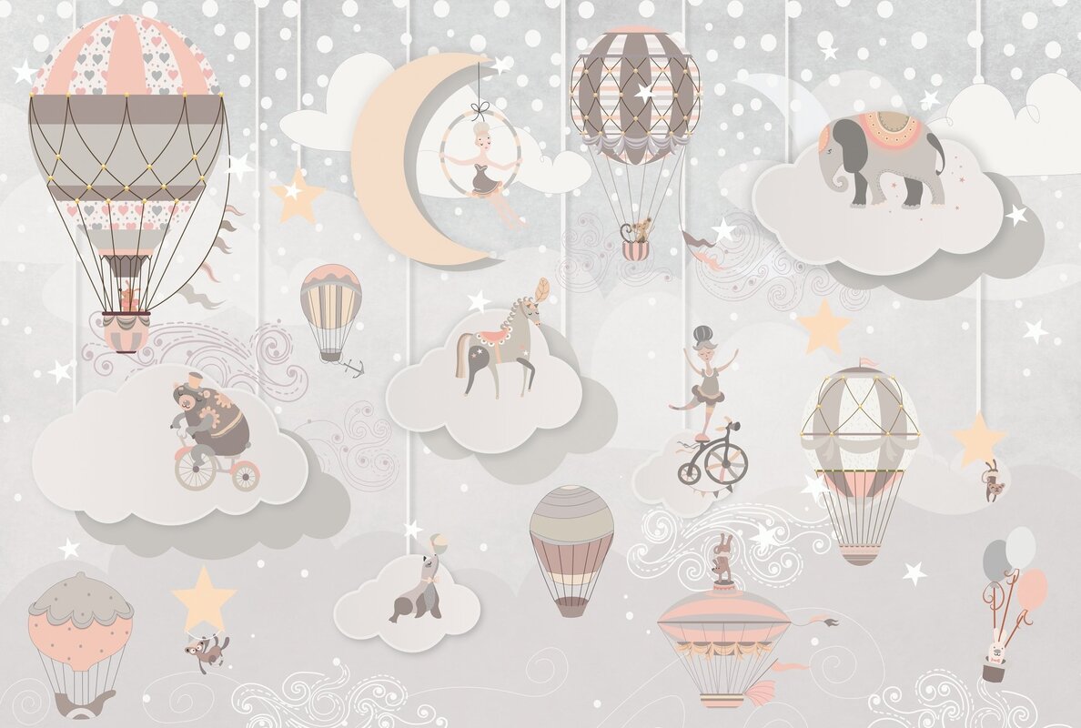 Papier peint : Petits animaux et ballons dans un monde de cirque féerique