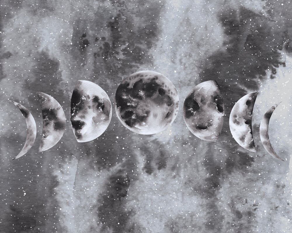Papier peint : Phases de la lune sur un fond de ciel en aquarelle