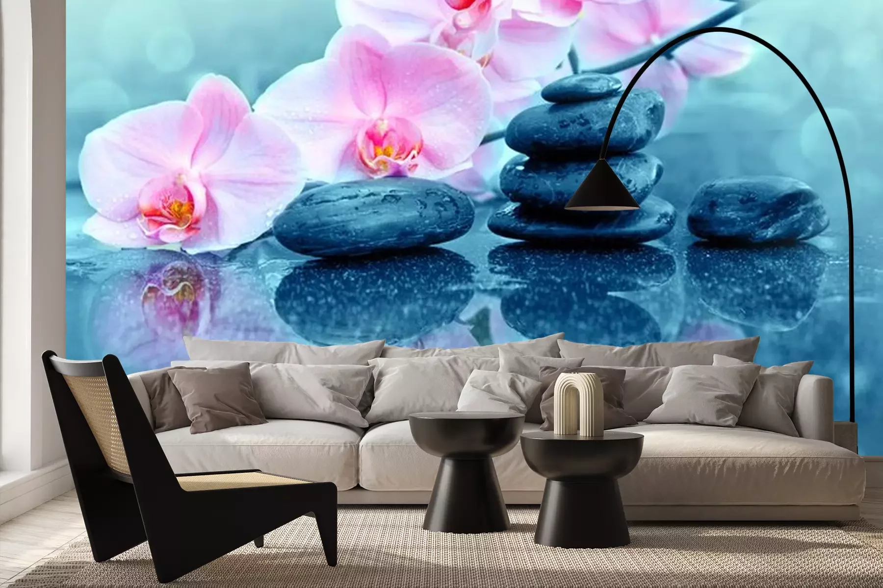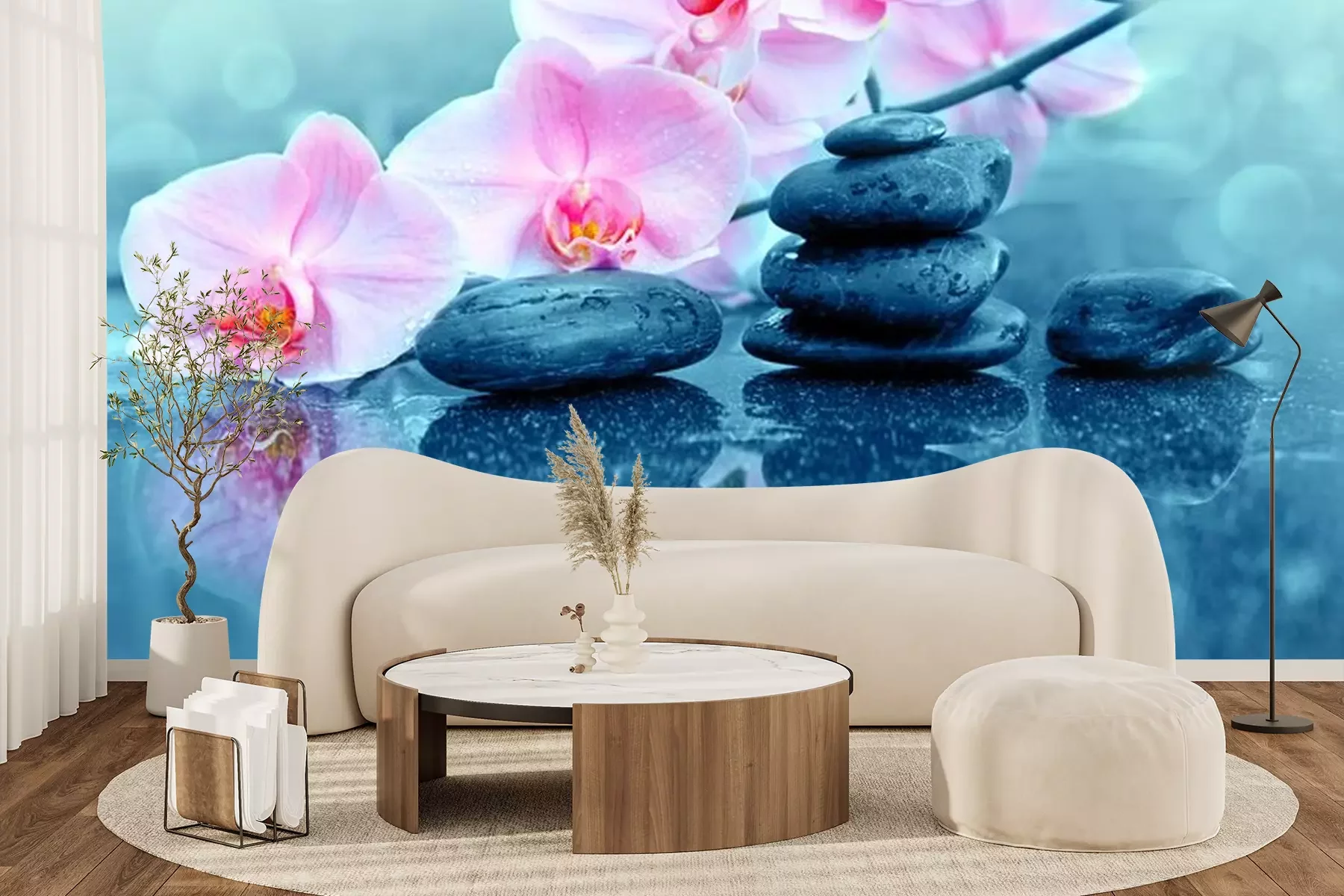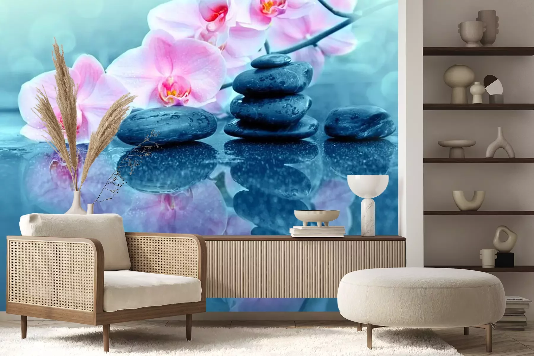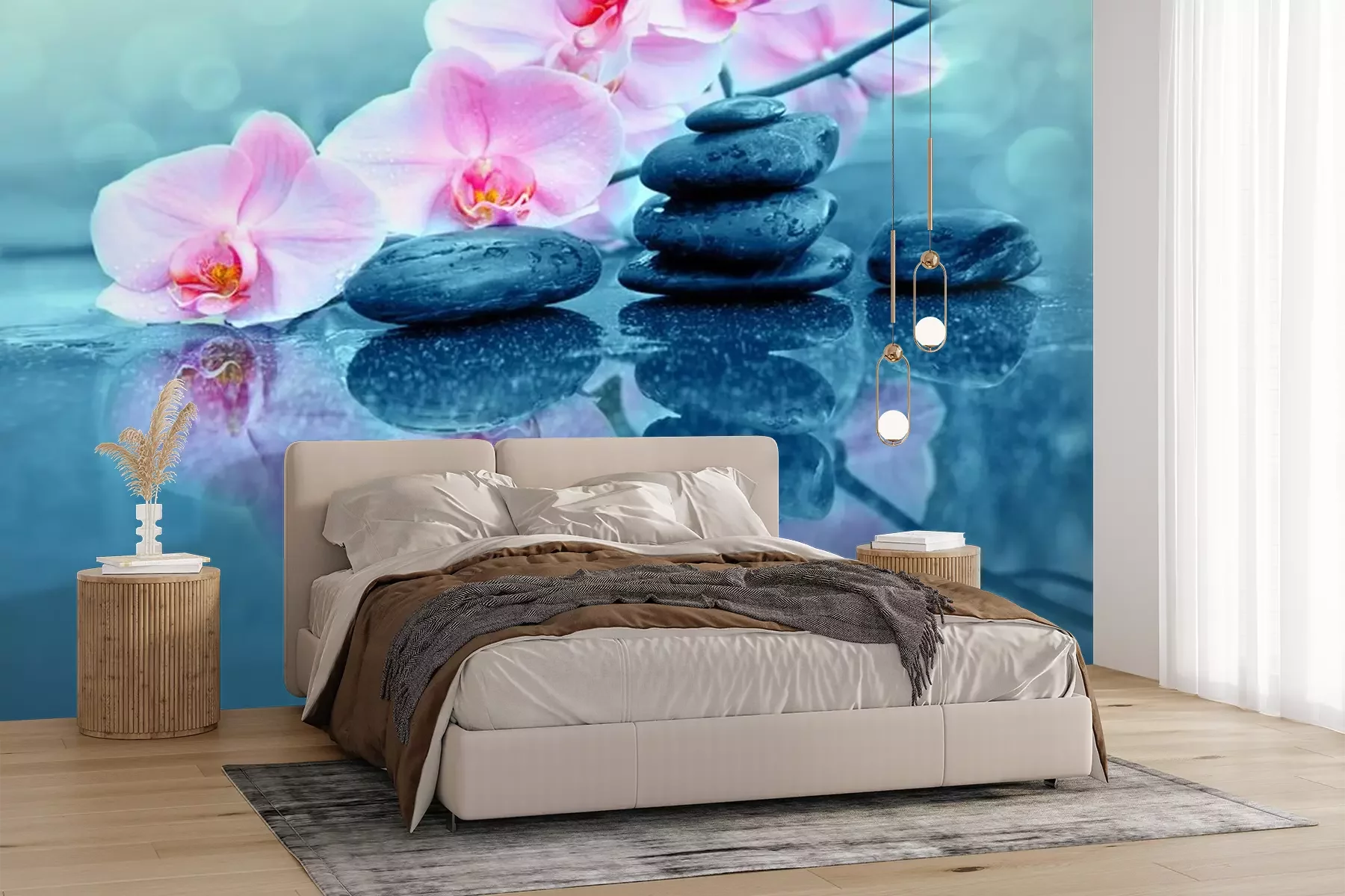 Papier peint  Pierres et fleurs d'orchidées