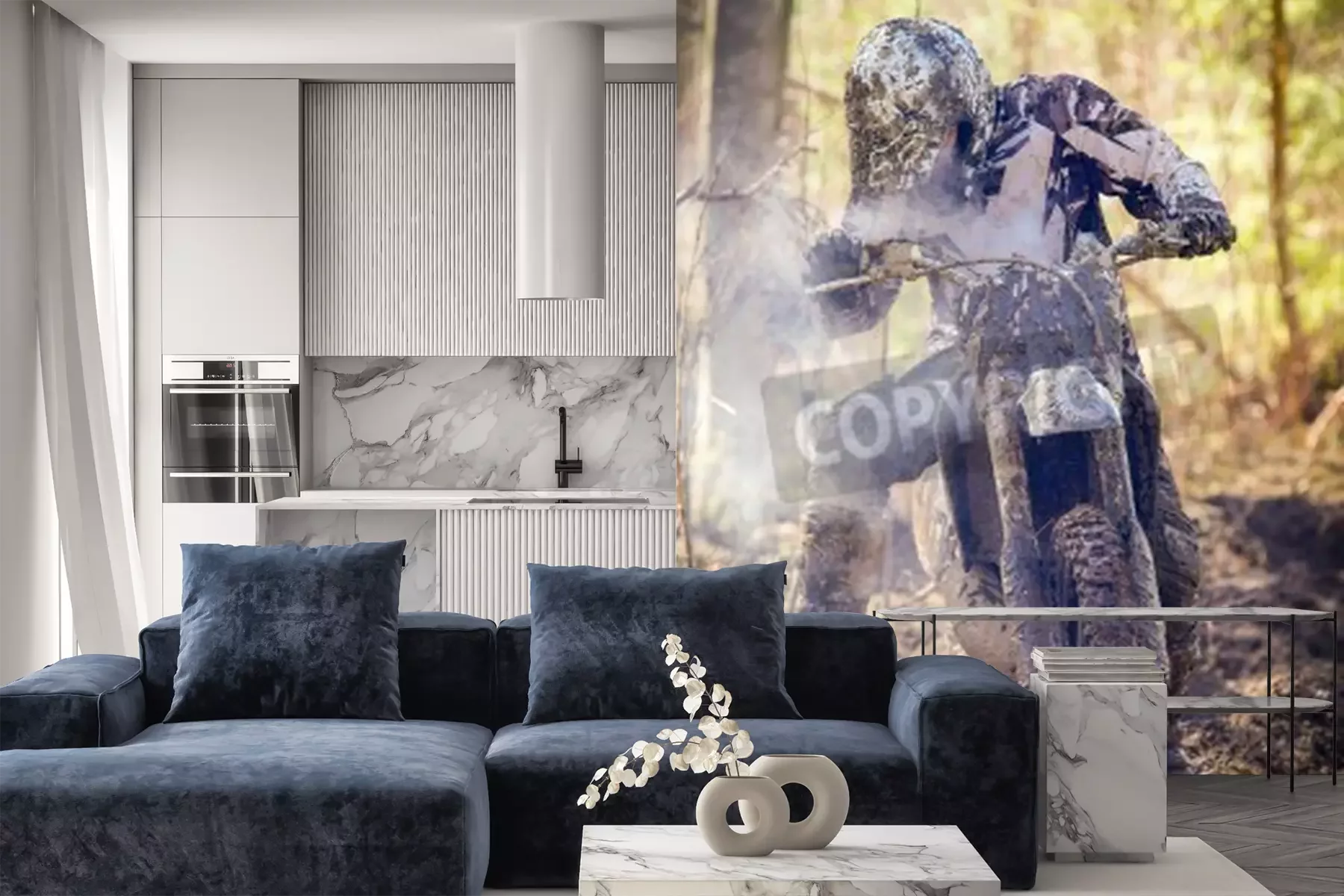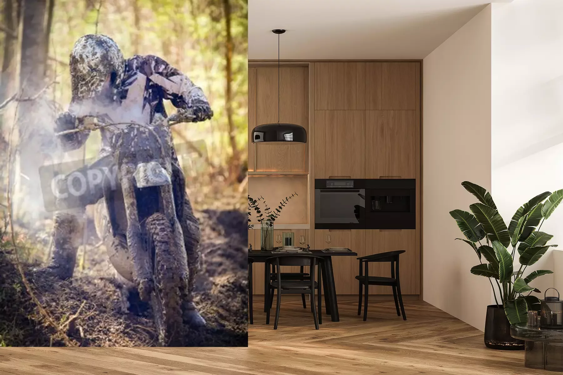 Papier peint  Pilote de Motocross ayant une panne de moteur sur un terrain humide et boueux dans Parola, la Finlande