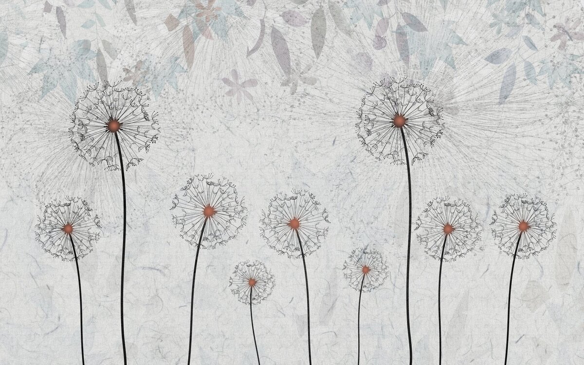 Papier peint : Pissenlits abstraits sur fond gris avec une texture délicate, style moderne