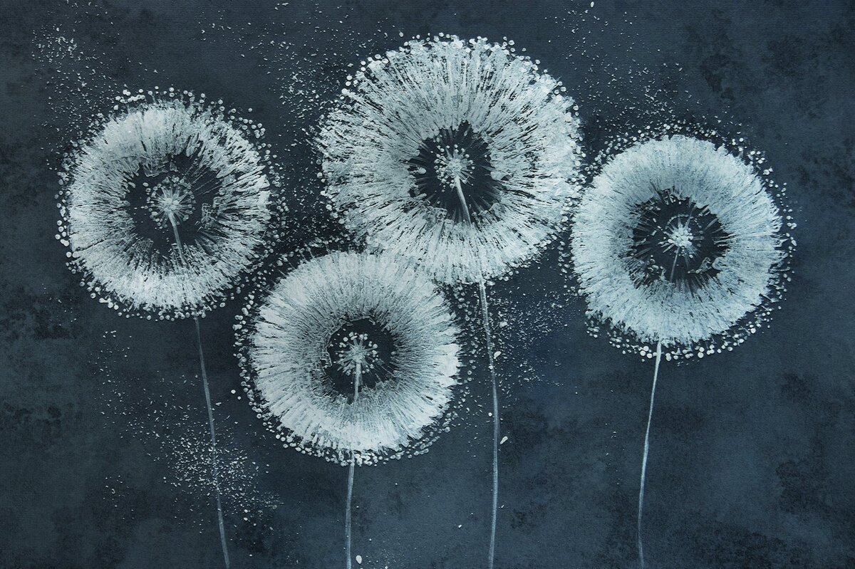 Pissenlits blancs peints sur le mur
