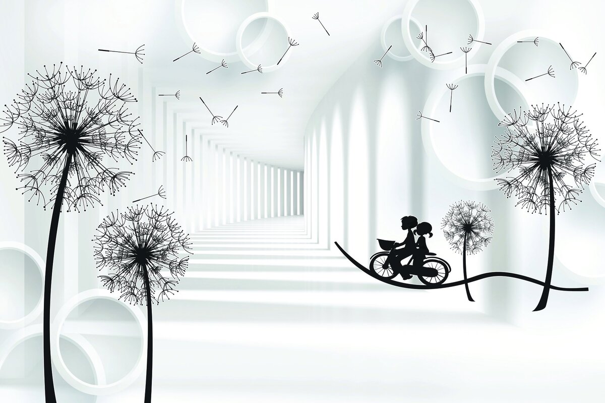 Papier peint : Pissenlits noirs dans l'espace 3D