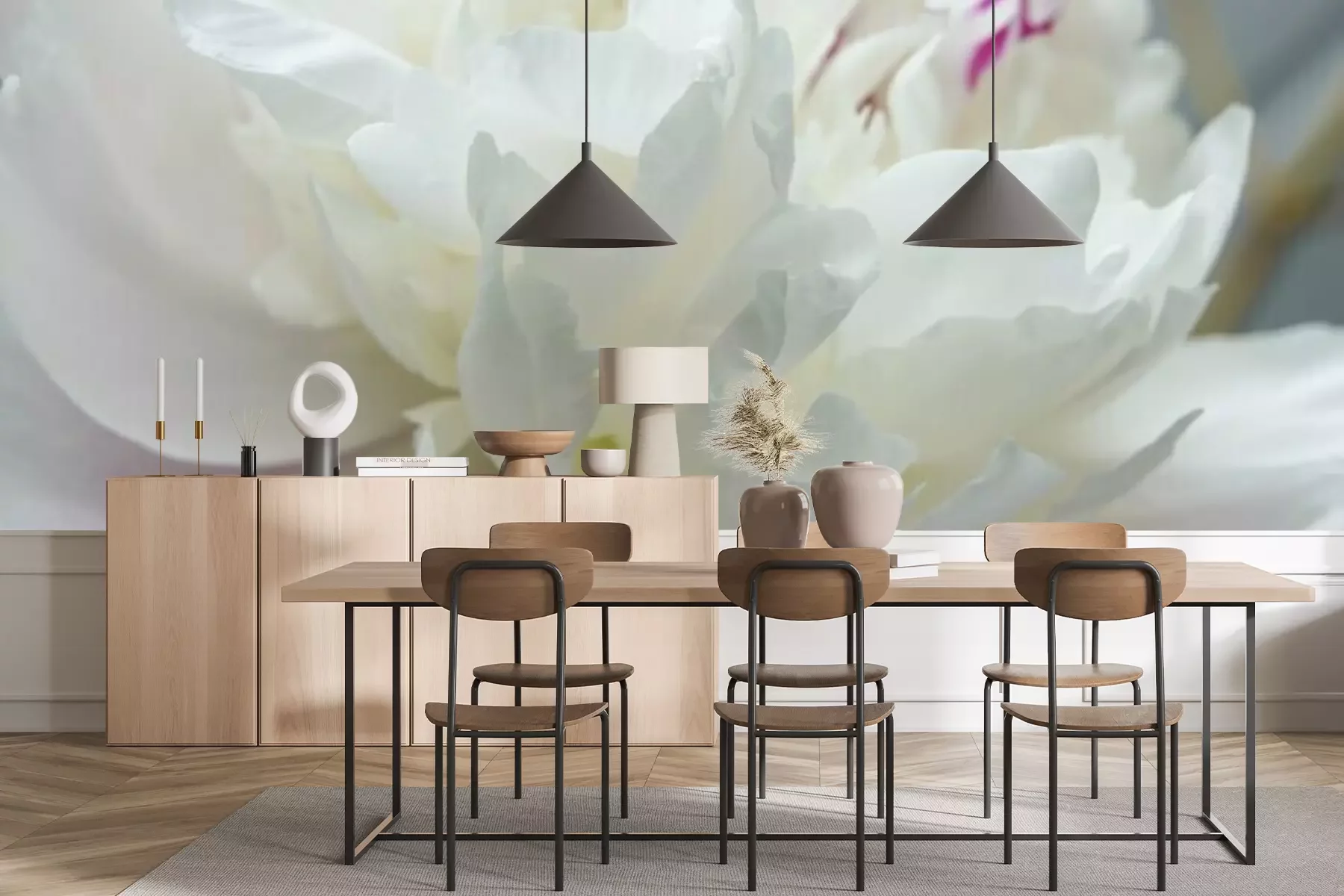 Papier peint  Pivoine blanche macro