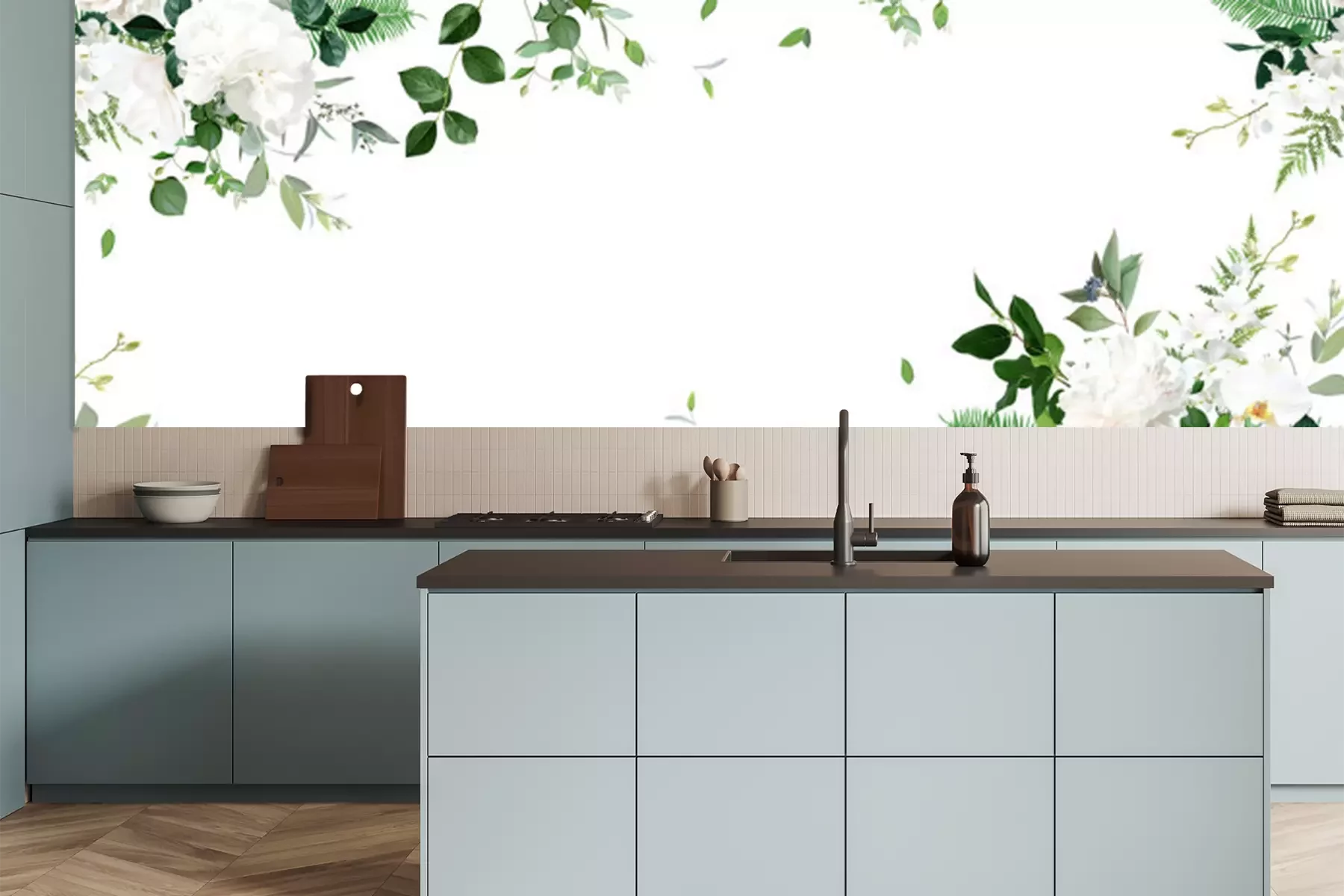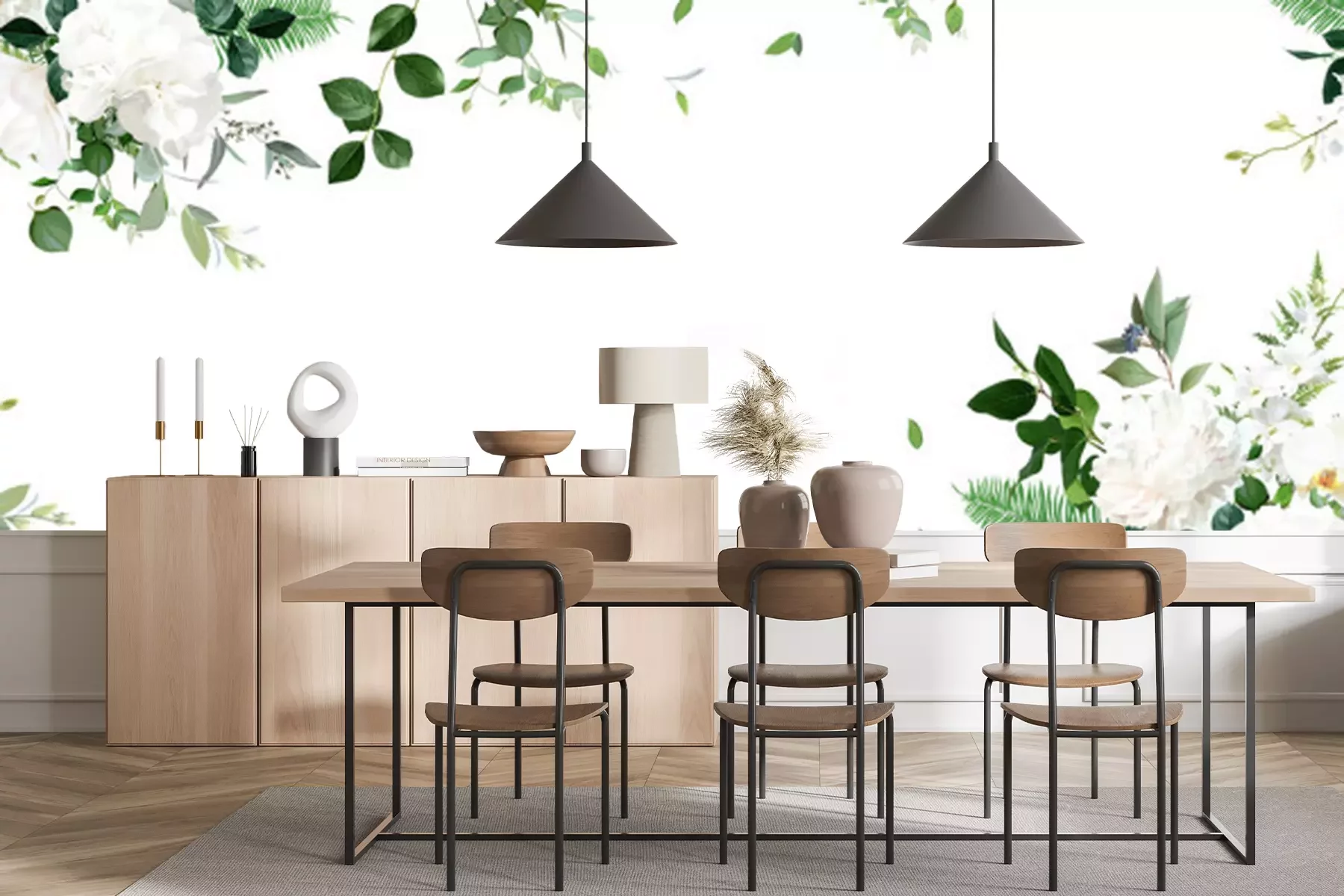 Papier peint  Pivoines et feuilles blanches